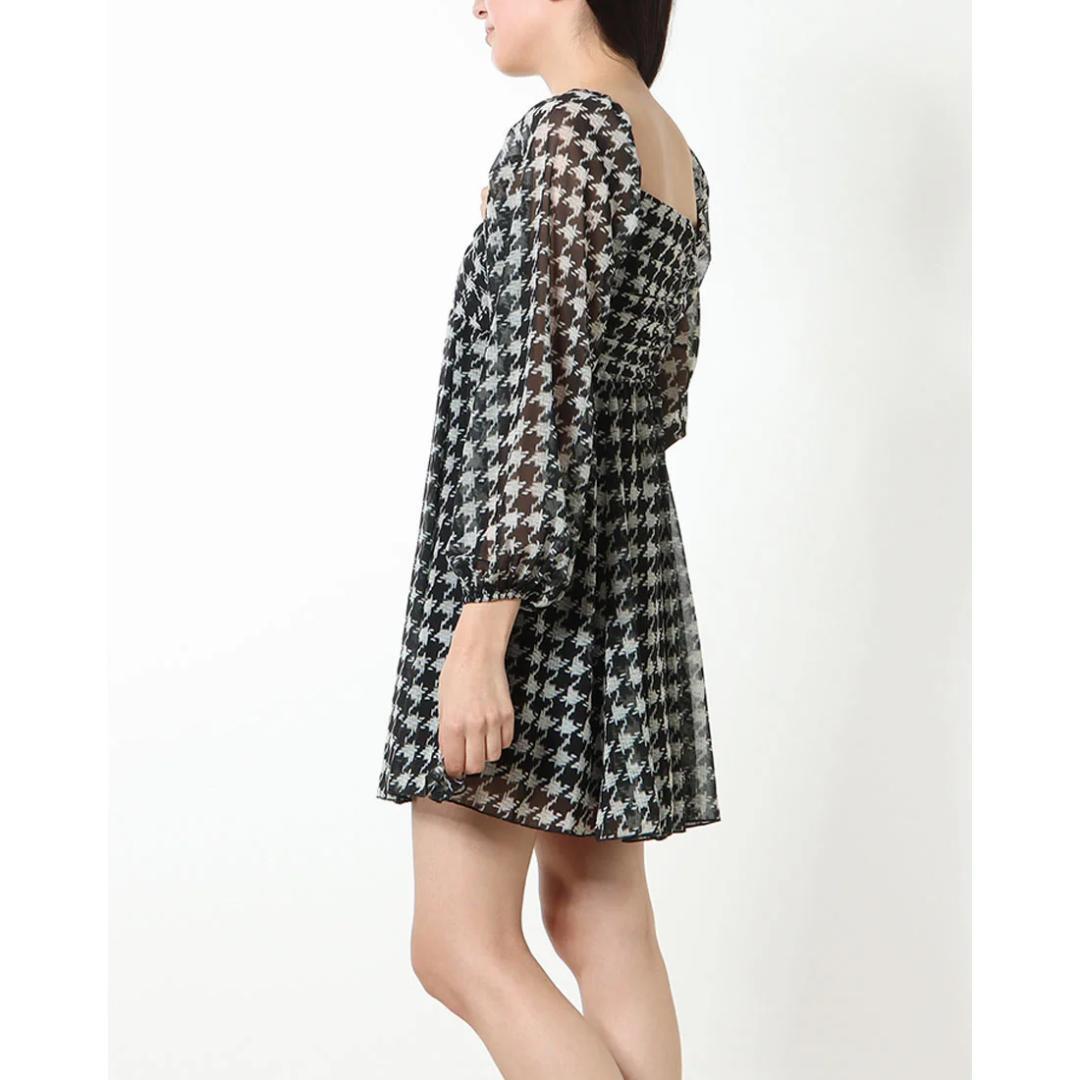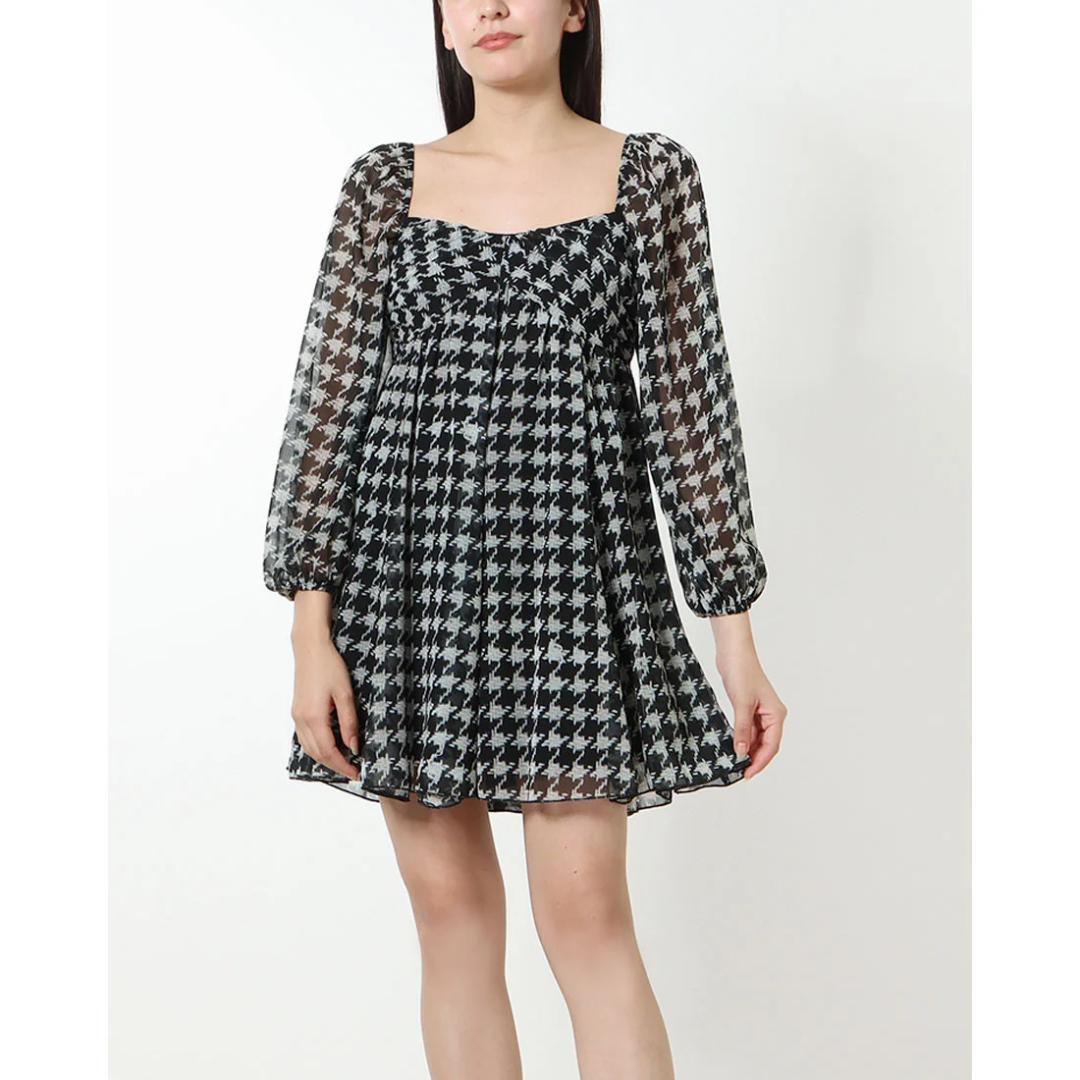 ハウンドトゥースプリントスクエアネックミニワンピース