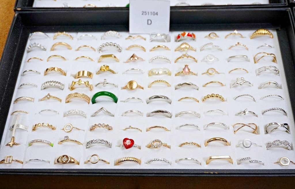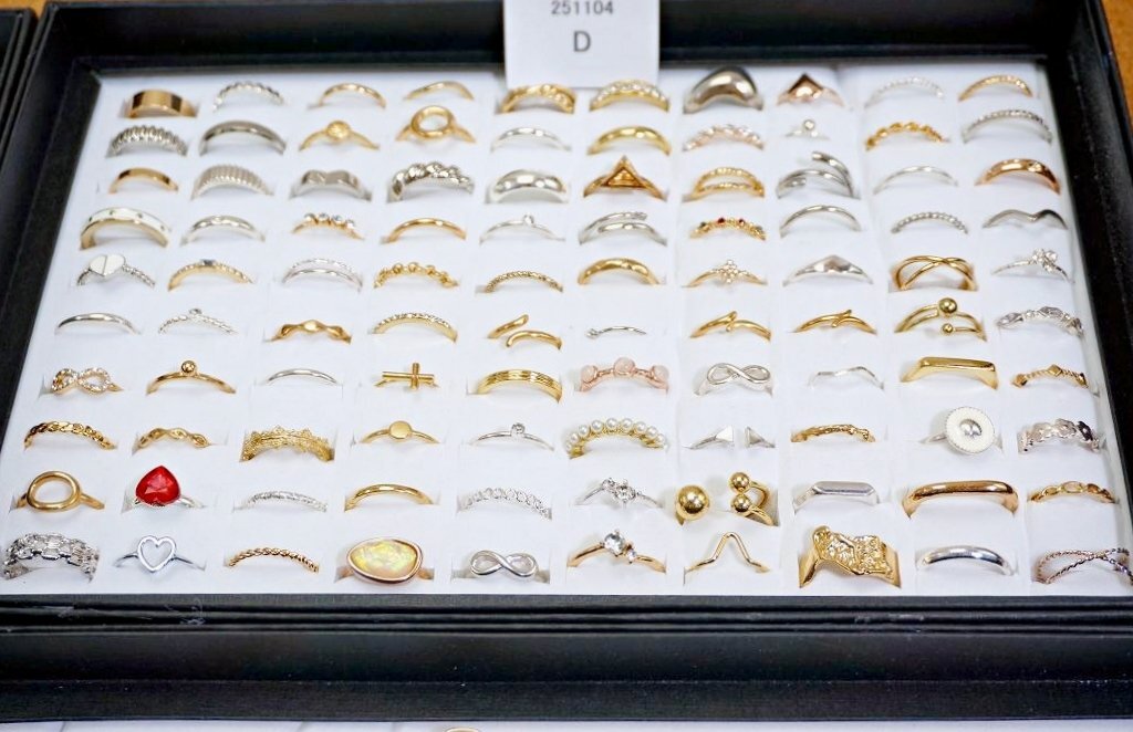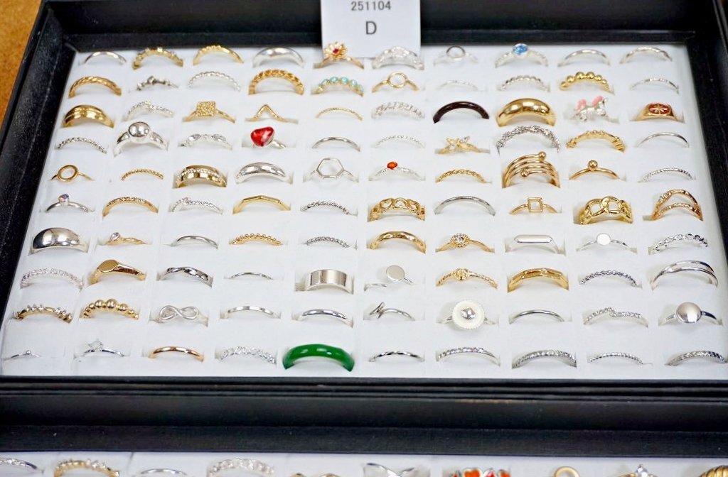 新品 昭和レトロ 細身指輪 400点セット 細身のファッションリング 400点セットです。 写真がお譲りする商品の全てになります。 サイズ:約16-20mm 個数:400点 ※ケースはおまけとして出品しますので、ケースの不具合に関しては対応はできません。 ※400点セットとしておりますが指輪のサイズの関係で隣合ってケースに収めることができないため、 場合によっては指輪の数が400点より少ないことがあります。 いずれにせよ写真のとおりの商品がお届けする現物になります。 当店の他の出品商品との同梱料は下記のとおり落札1点につき200円です。 |