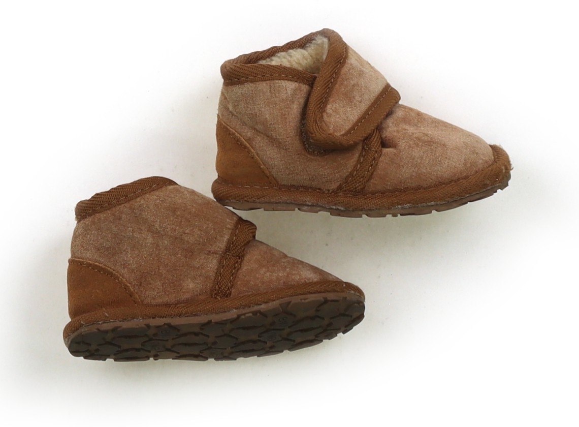 実際のサイズ表記は6-12MONTHS。実寸は約13cm。スウェードで内側ボア。マジックテープ留め。擦れと薄汚れがありますが、まだまだお使いいただけます。