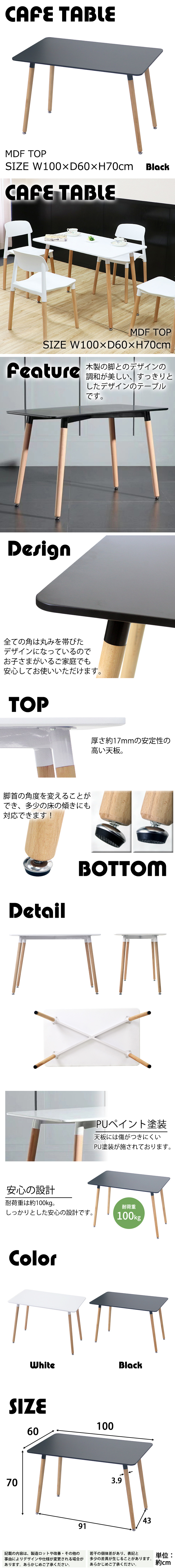 | 商品名 | 送料無料 カフェテーブル ダイニングテーブル 幅約100cmx奥行約60cmx高さ約70cm おしゃれ 角形テーブル 角テーブル スクエアテーブル 木製脚 イームズテーブル MDF PUペイント塗装 天板 センターテーブル 北欧 一人暮らし 組み立て簡単 2人 3人 4人用 dtablet26 |
