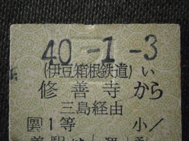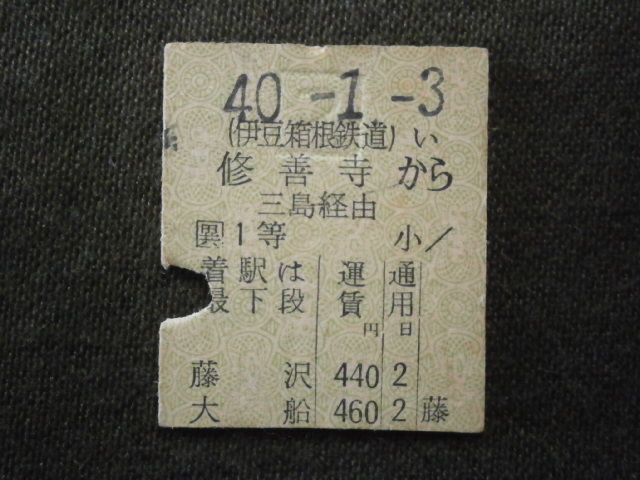 伊豆箱根鉄道 (異)1等 修善寺から大船ゆき 切断式乗車券