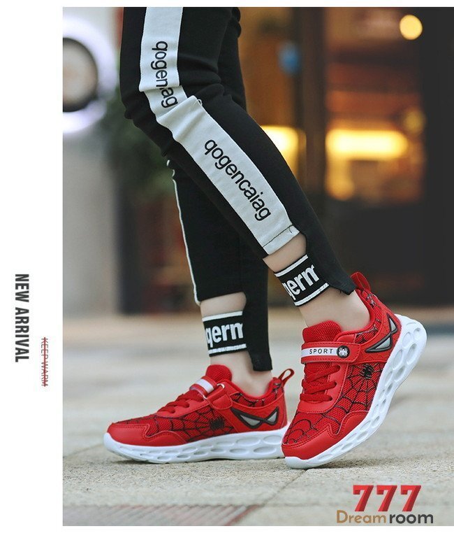 メッシュ素材 スパイダー デザインスニーカー 【レッド 21cm】 韓国子供服 キッズ シューズ 子供用 男女