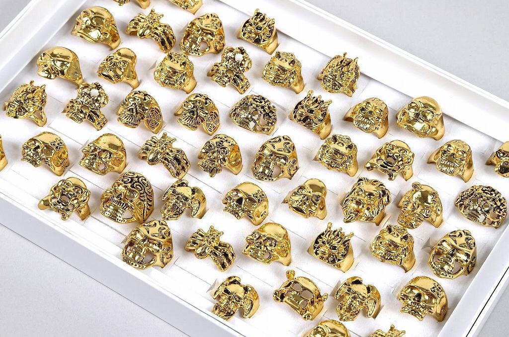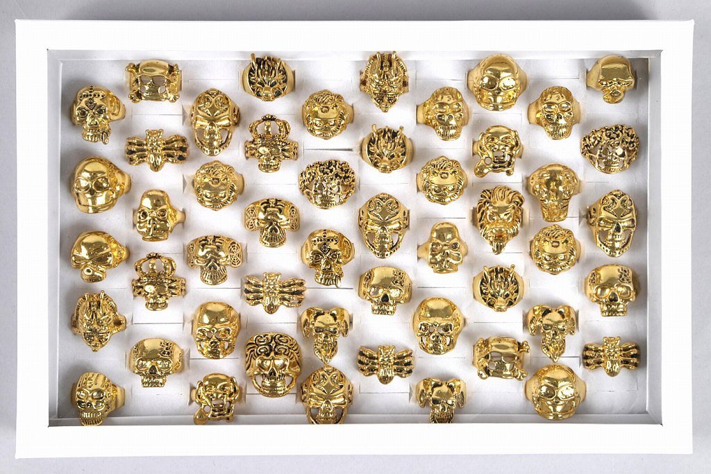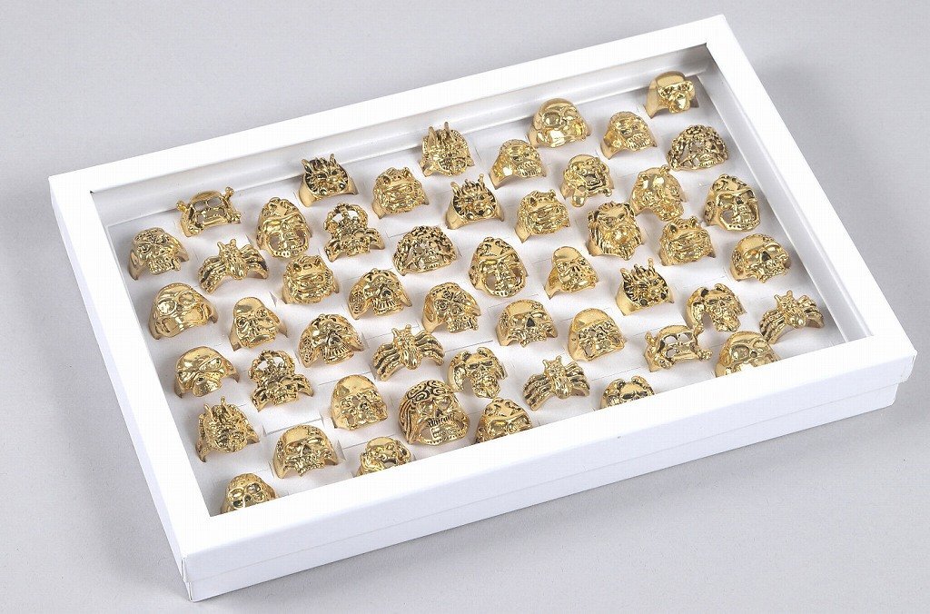 新品 メンズ ゴールド メタルリング 豪華50点セット ゴールド色のドクロやインディアンデザインのメンズファッションリング 豪華 50点セットです。 重厚で存在感のあるものを集めました。 指輪のデザインは写真を参考にしてください。 商品は写真の指輪をランダムに50点選んで発送いたします。 (サイズもランダムになります。場合によっては写真にはないデザインになることもあります。) 選ぶ際はなるべく写真と同じような比率になるように選ぶようにいたします。 (極端な偏りがあるような選び方はいたしません。) サイズ:約16~20mm 指輪総重量:約500g 材質:合金 金色メッキ (金によるメッキではありません。) 個数:50点 ※写真のようにケースに指輪50点を収めた状態で発送いたします。 (ケースはロットによってデザインやカラーが違う場合があります。) ※ケースはおまけとして出品しますので、ケースの不具合に関しては対応はできません。 当店の他の出品商品との同梱料は下記のとおり落札1点につき200円です。 |