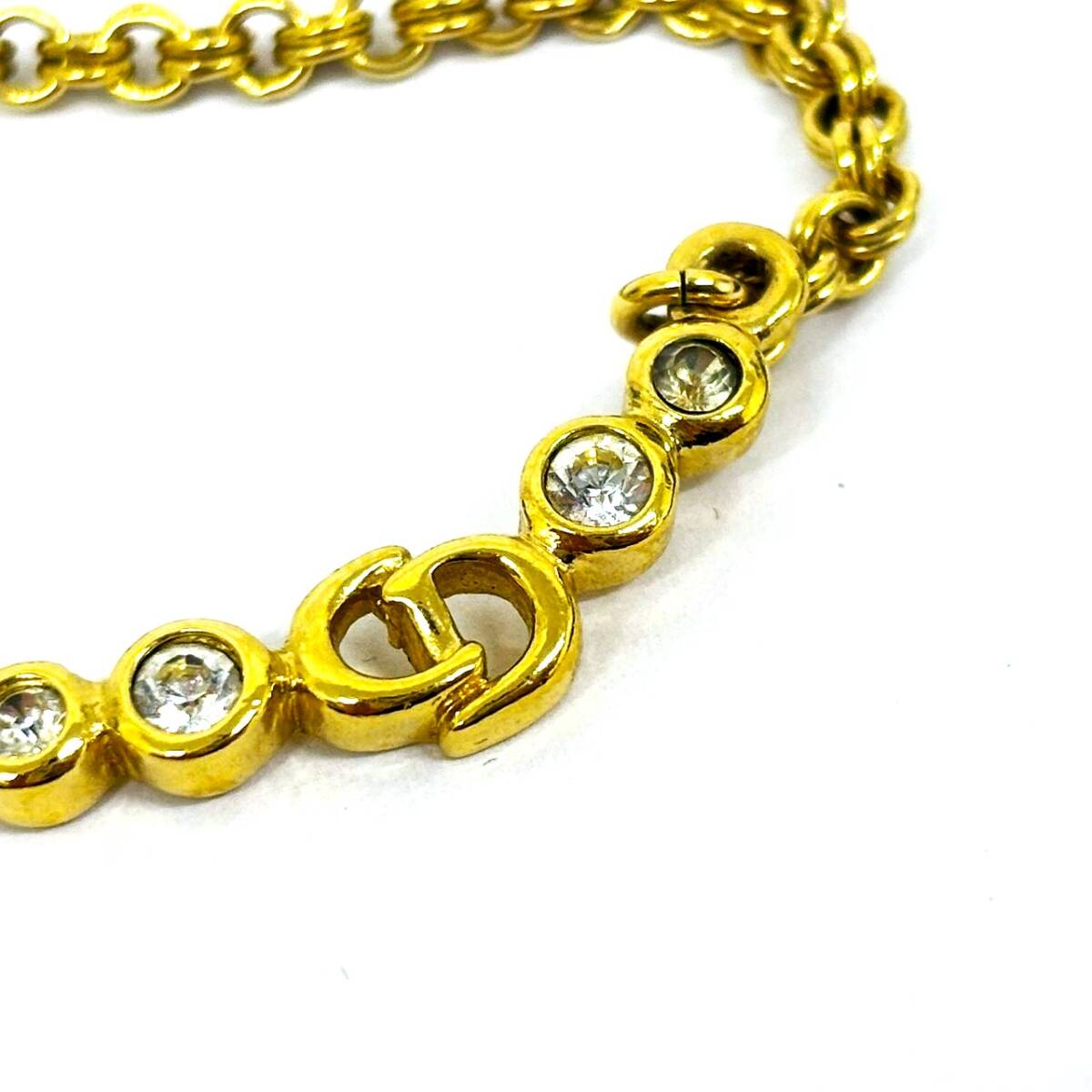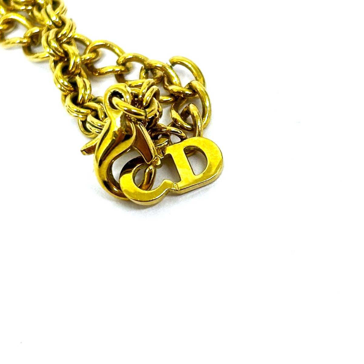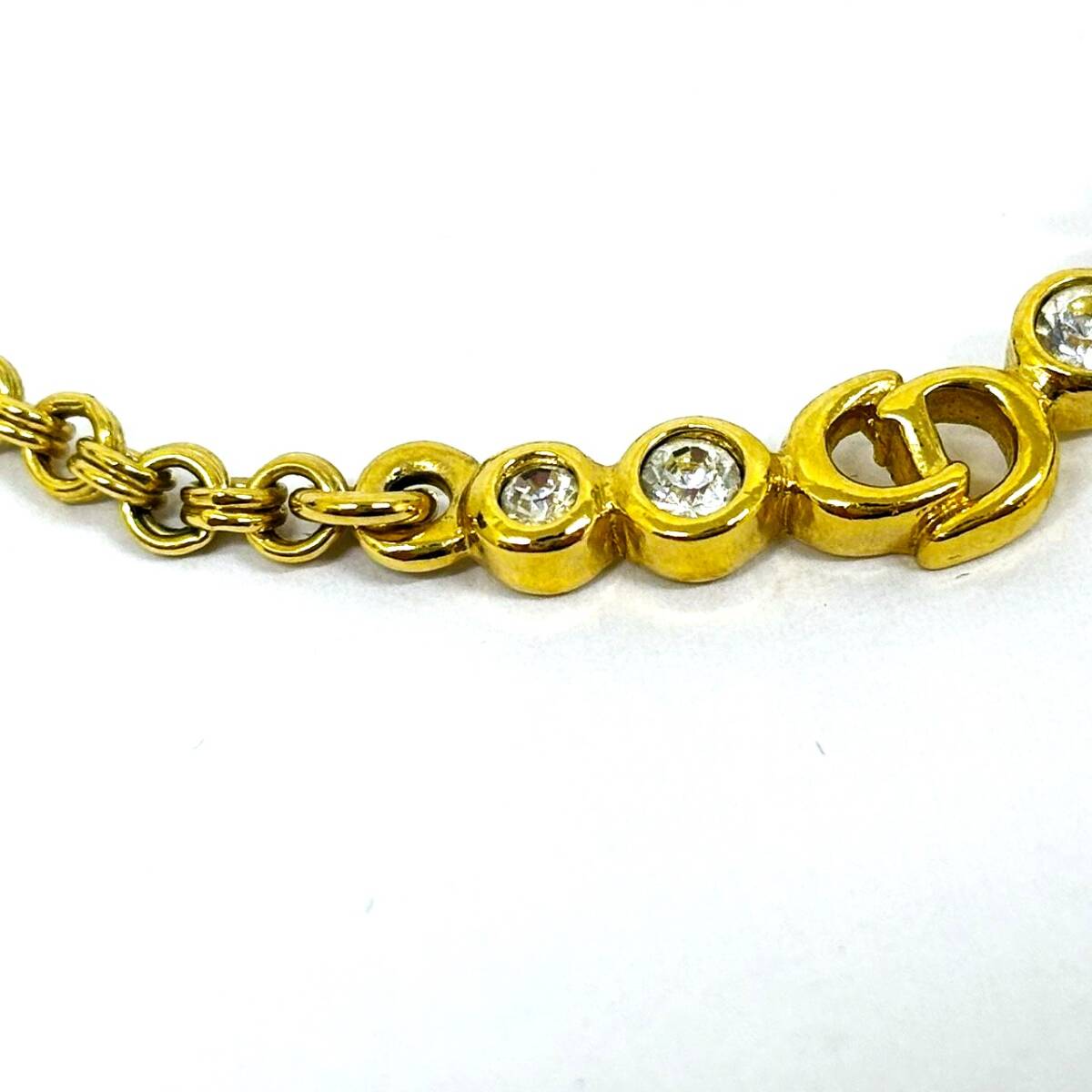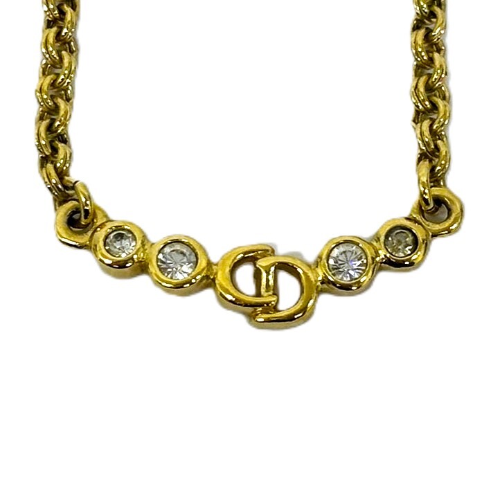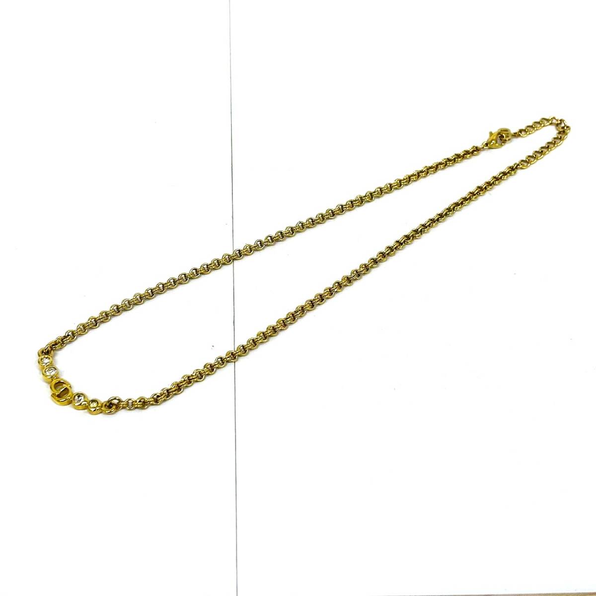 【8190】1円スタート ChristianDior クリスチャンディオール アクセサリー ジュエリー CDロゴ ストーン ネックレス ゴールド系 レディース