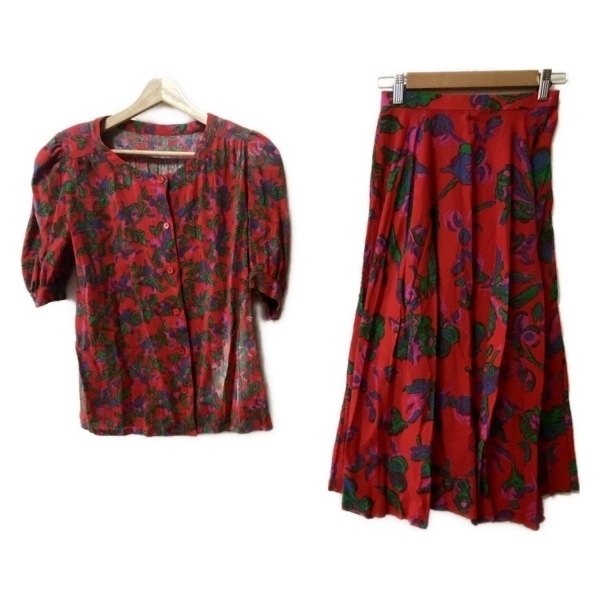 ユキコハナイ YUKIKO HANAI スカートセットアップ - レッド×グリーン×マルチ レディース レディーススーツ