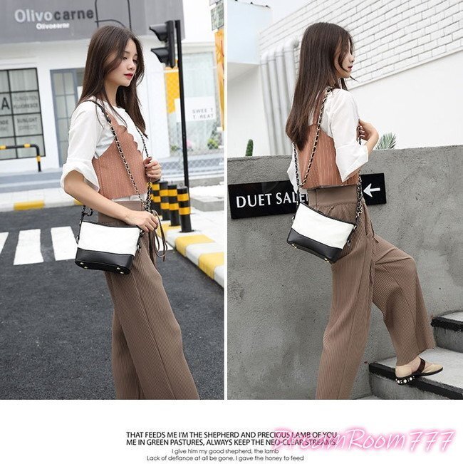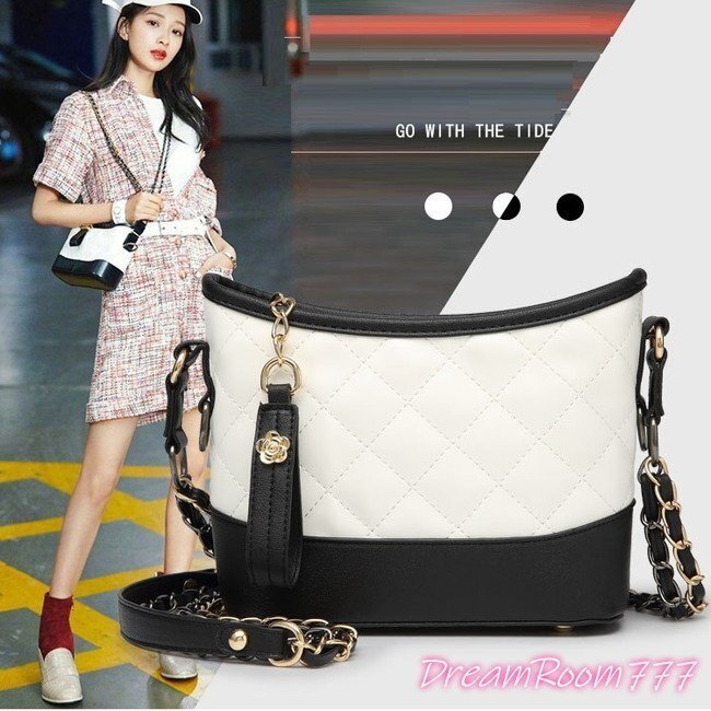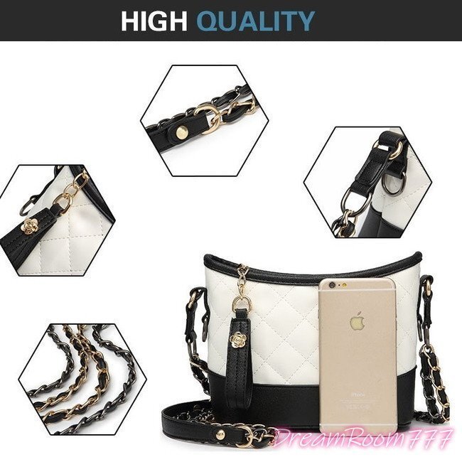 バイカラーキルティングチェーン ショルダーBAG 【ブラック×ホワイト】革 レザー ハンドバッグ 海外セレブ K-078-3