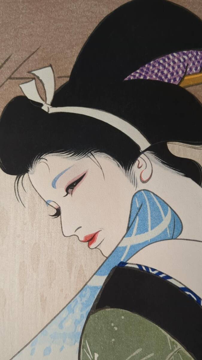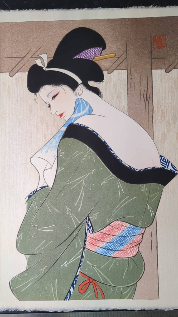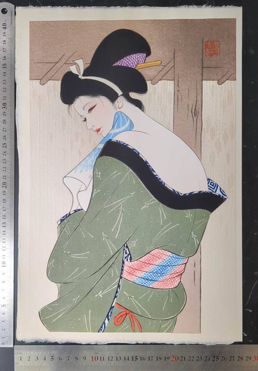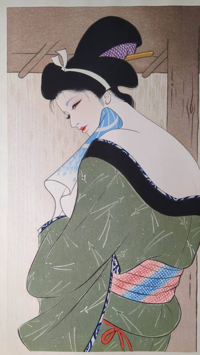 s111803浮世絵 真作 版画  岩田専太郎 伊東深水 『湯あがり』 木版画 錦絵