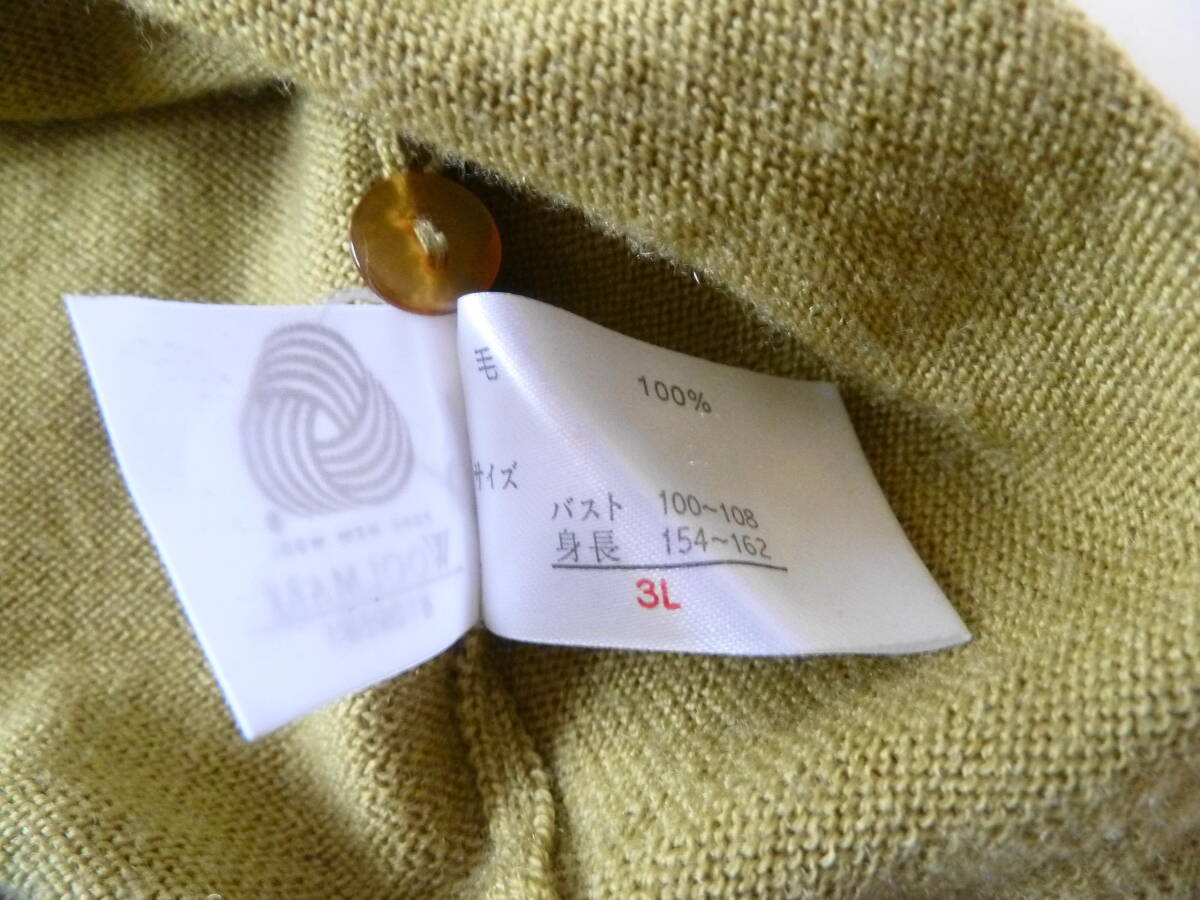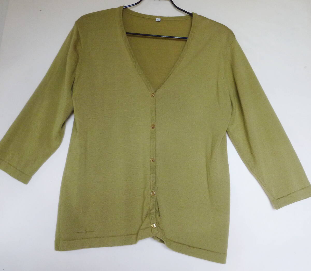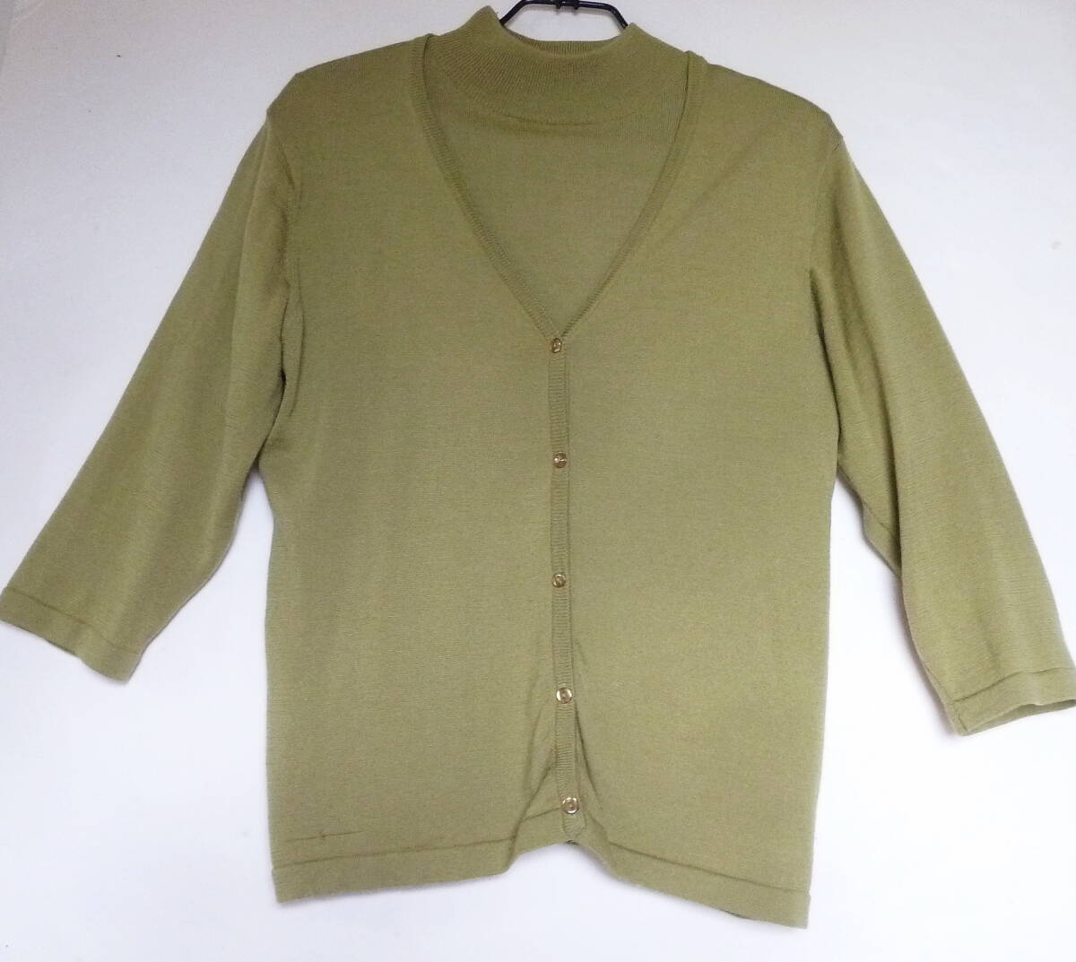 ♪大きいサイズ 3L アンサンブルニット ツインニット 半袖セーター+七分袖カーディガン 抹茶色 上品 古着 難あり