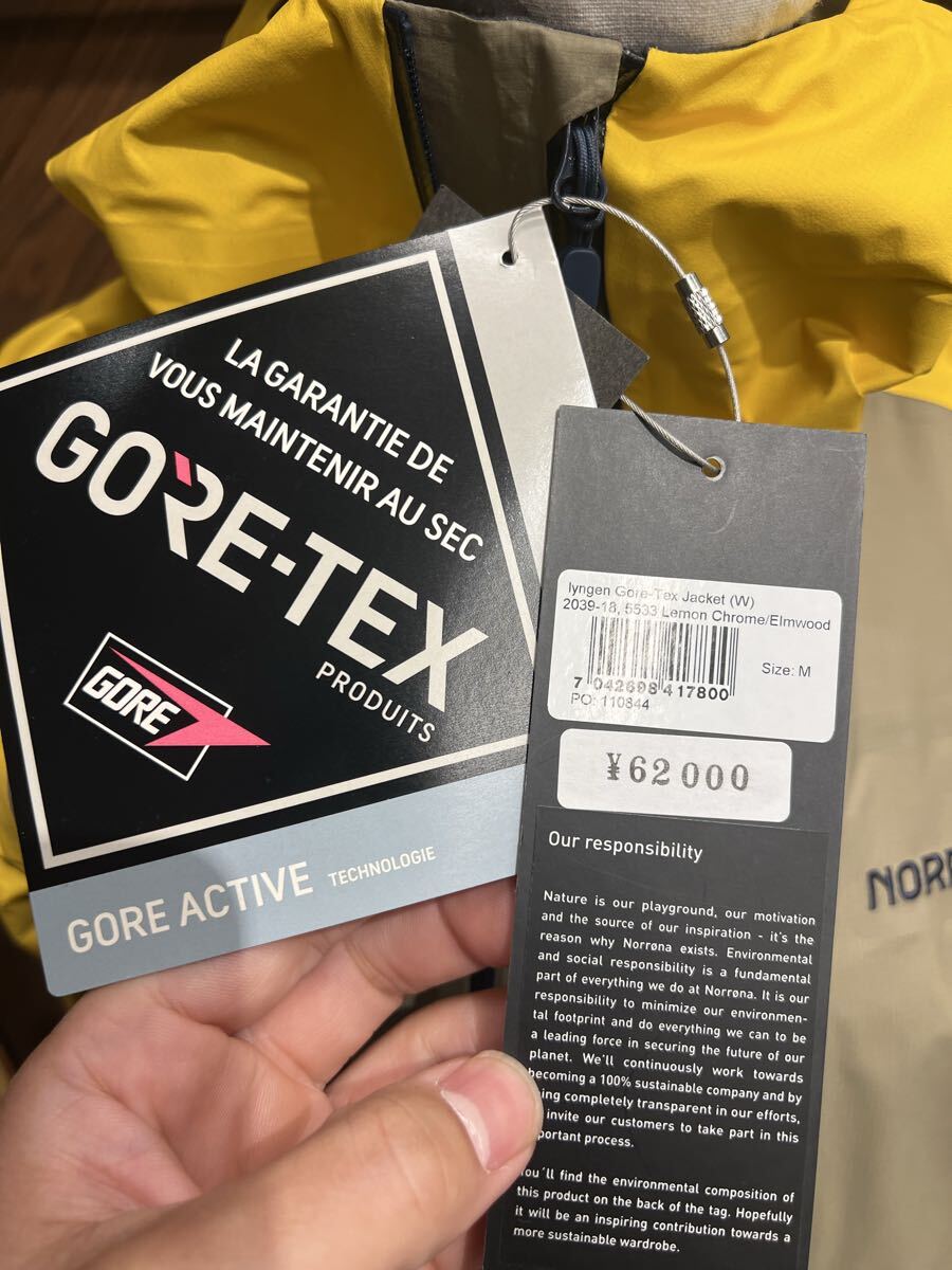 その他部分は透湿性に優れるGore-tex Activeを使用し、軽量で通気性を兼ね備えた防水シェルジャケットとなってます。