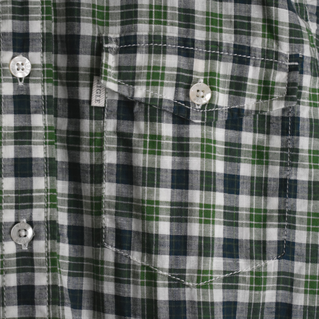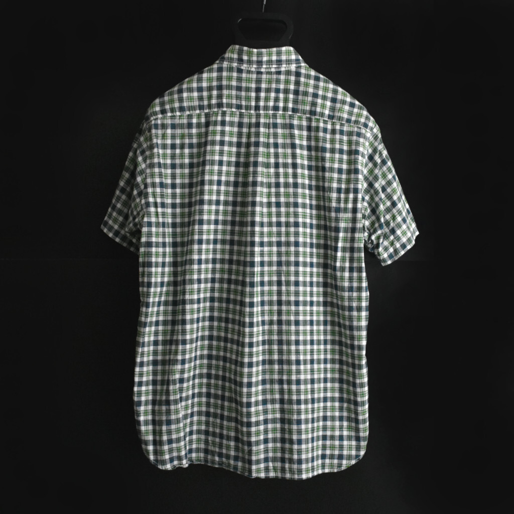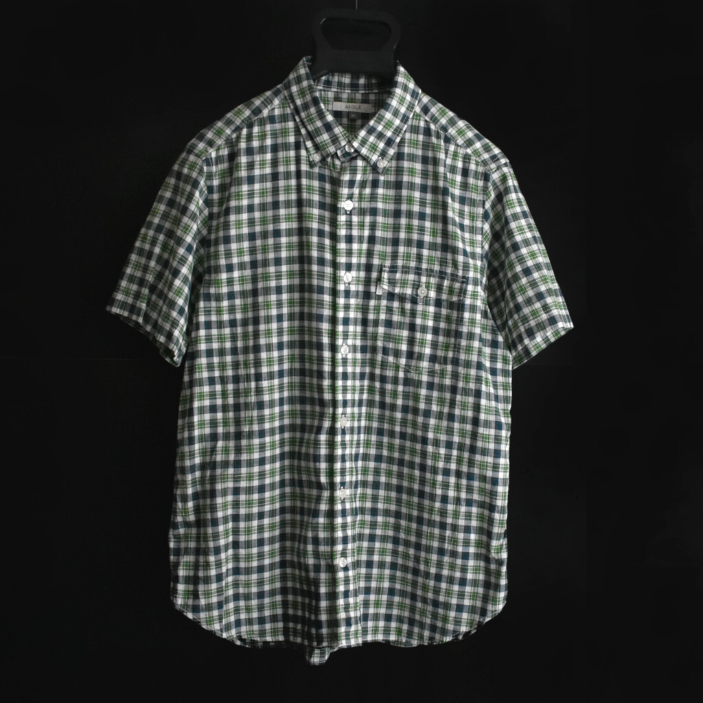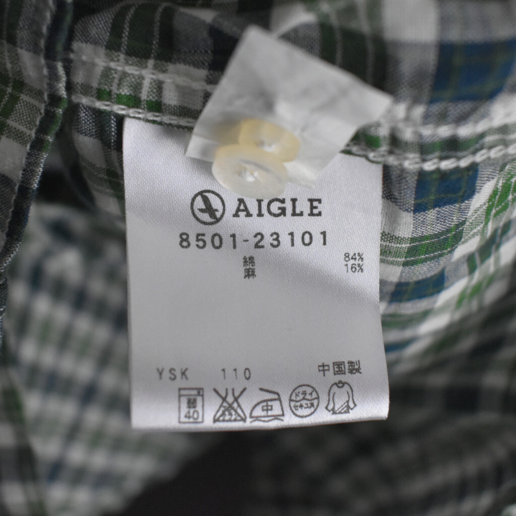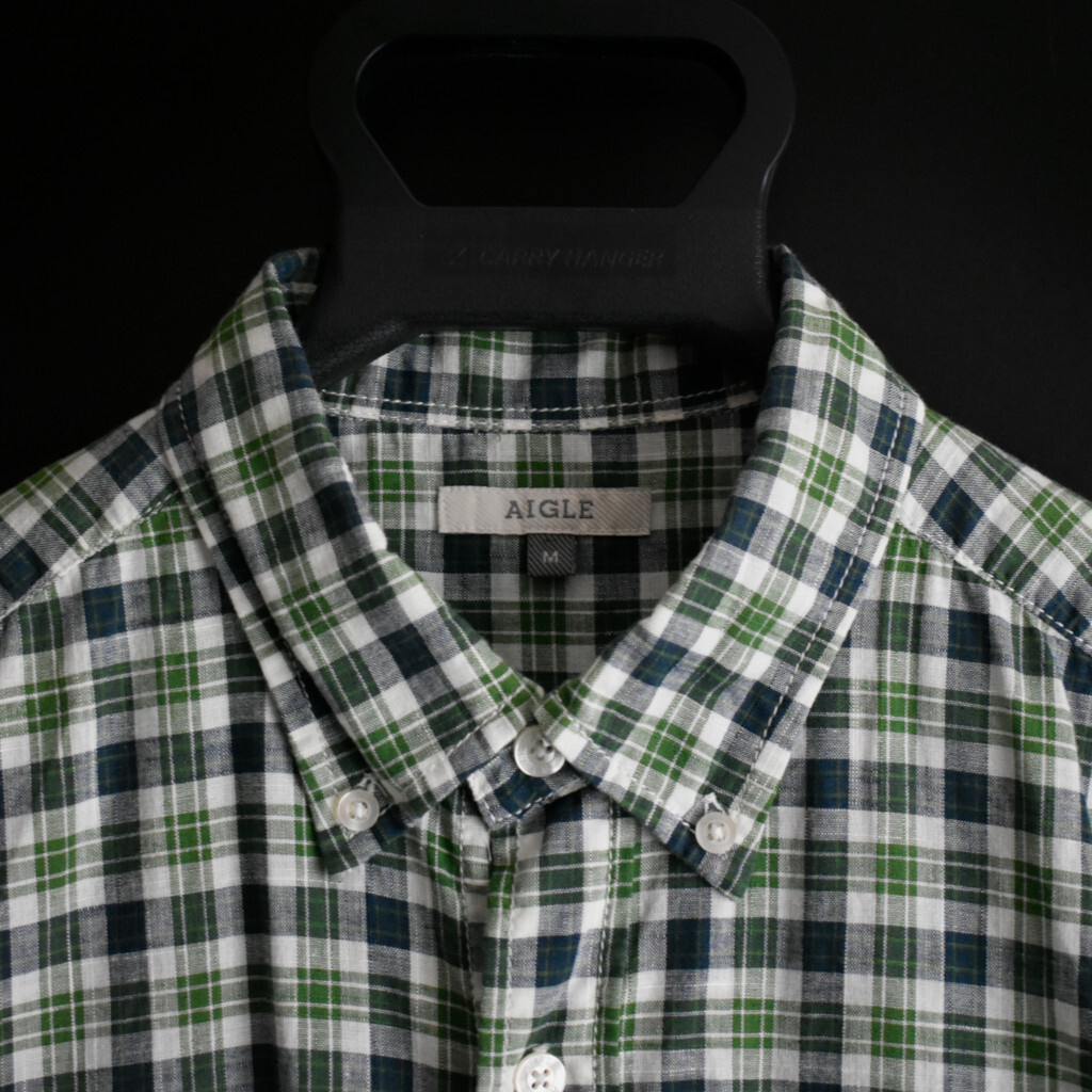 美品 AIGLE エーグル 綿×麻 ボタンダウン シャツ M メンズ コットン リネン チェック 半袖