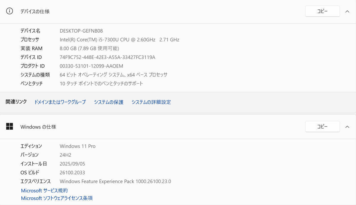 CPU: Intel Core i5 7300U(第7世代)@2.60GHz