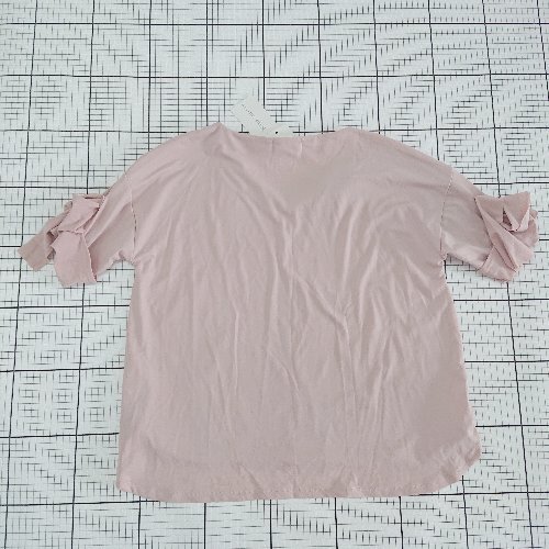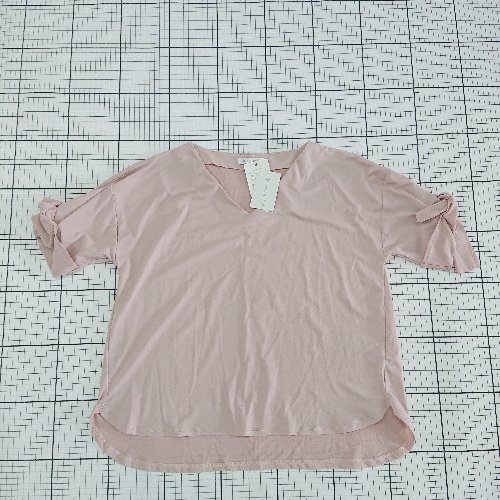◇ ⊂ 未使用 THE SHOP TK ザ ショップ ティーケー タグ付き Vネック 半袖 カットソー サイズM ピンク系 レディース E