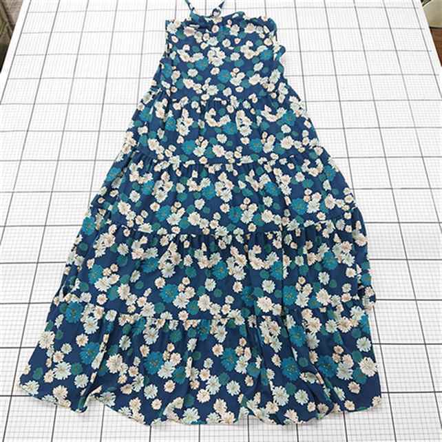 ◇ ⊂ UNIQLO×PAUL & JOE フラワーデザイン ノースリーブ ロング ワンピース サイズM ネイビー系 レディース E
