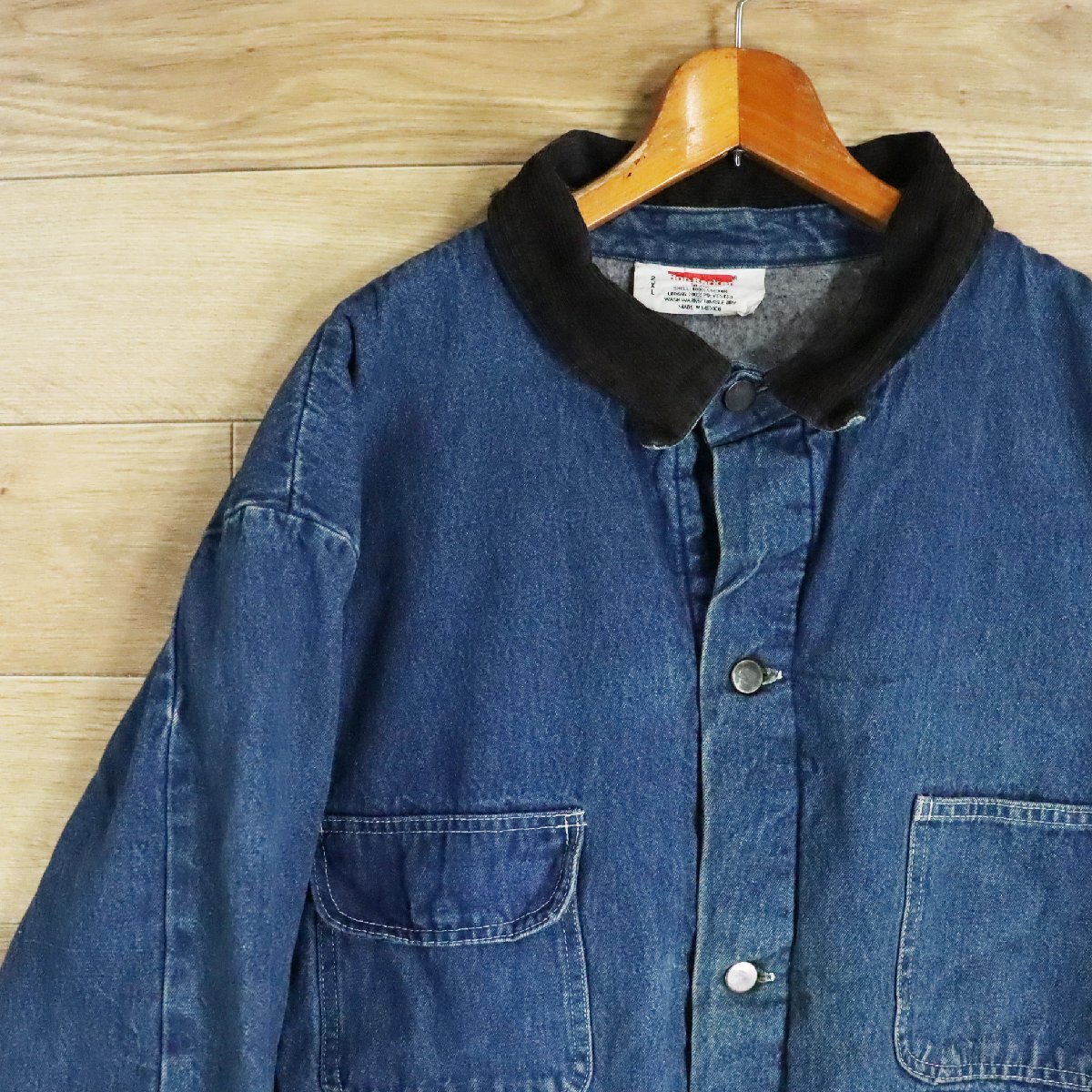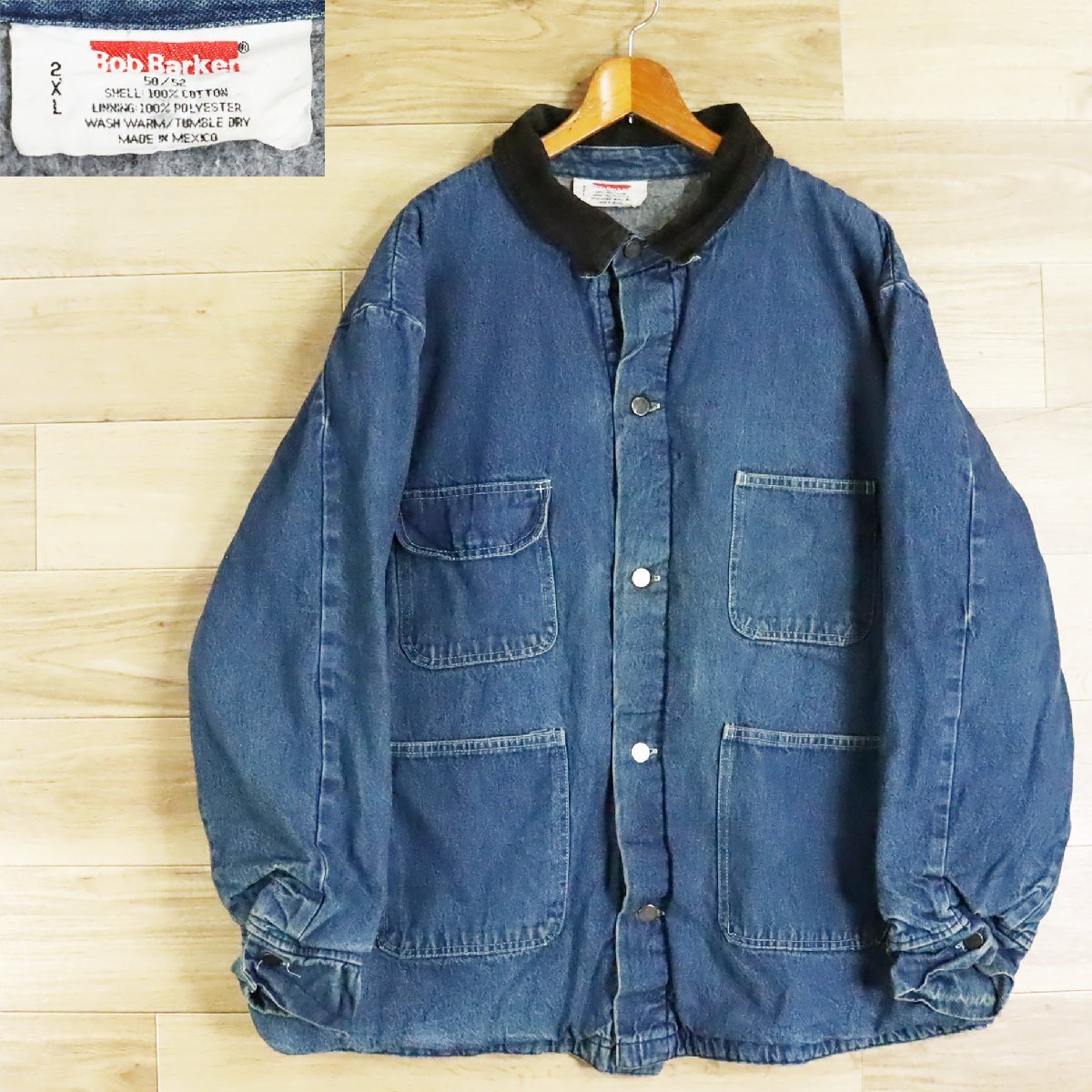 B1S/D5.27-3 Bob Backen デニムカバーオール 襟コーデュロイ 裏ブランケット ワークコート メンズ アウター 2XL ヴィンテージ