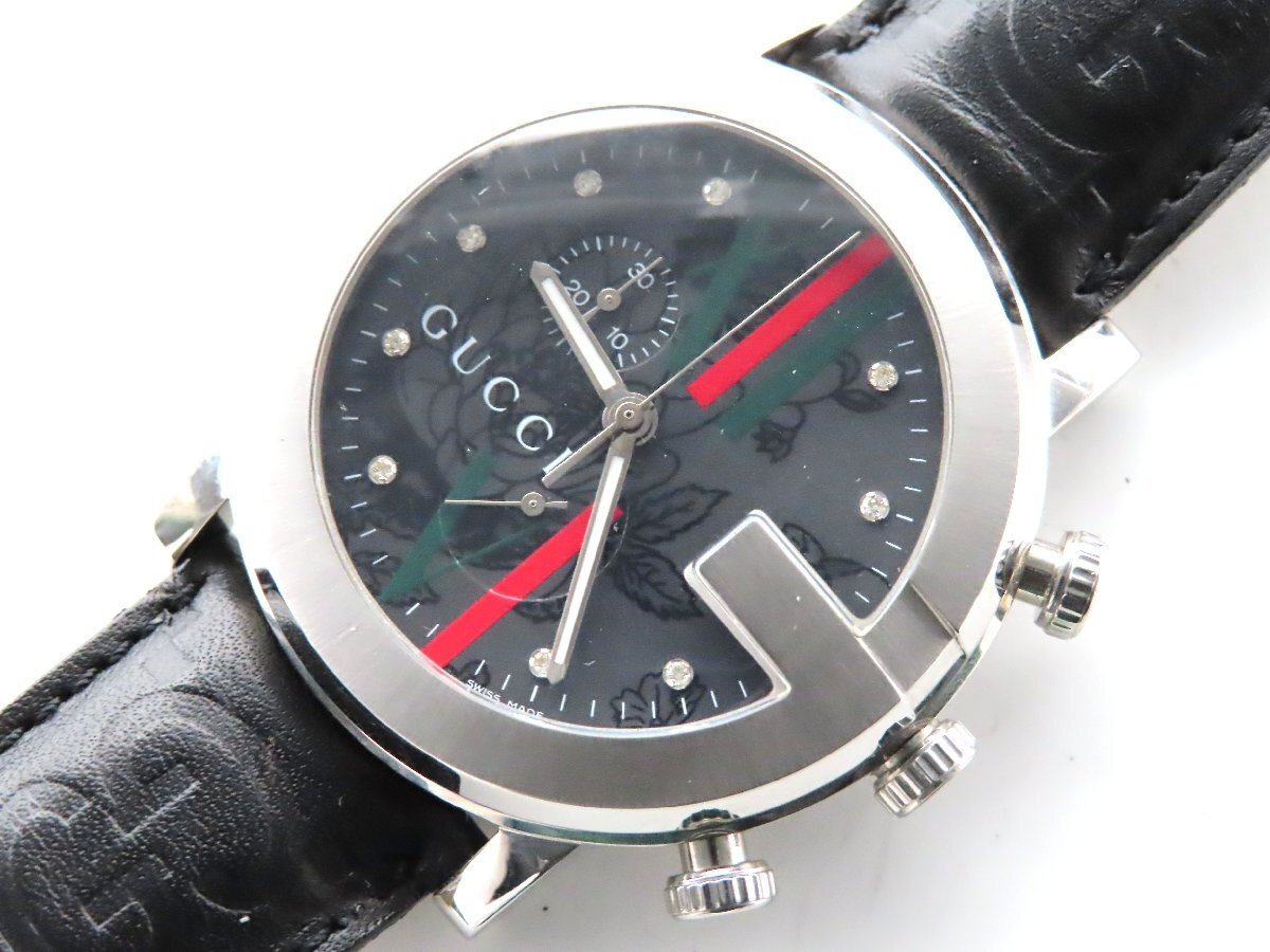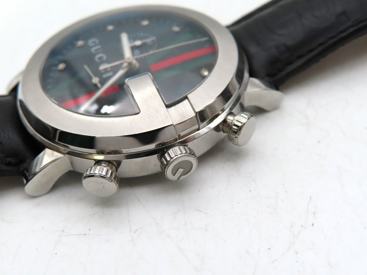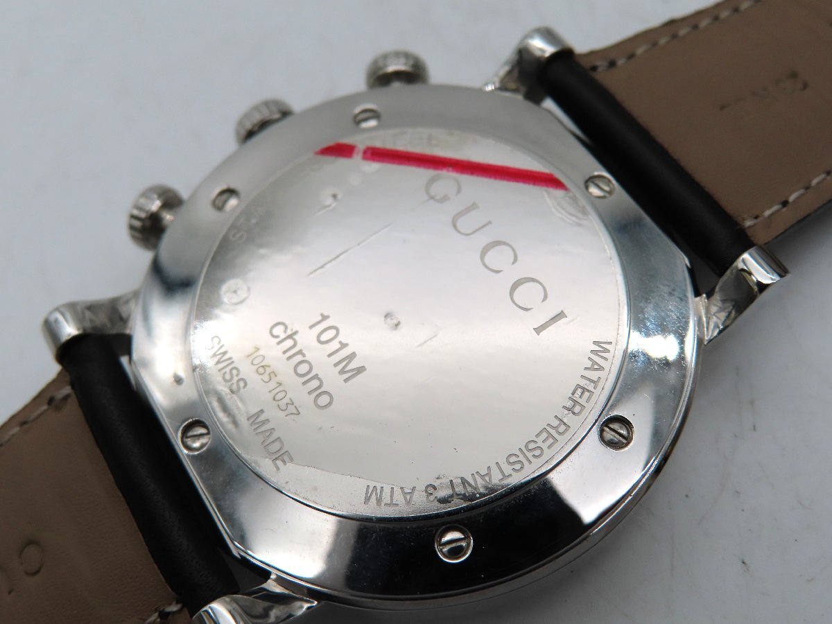 1円 GUCCI 101M SS/革 グレー文字盤 メンズ 稼働 QZ 27745 NKRS
