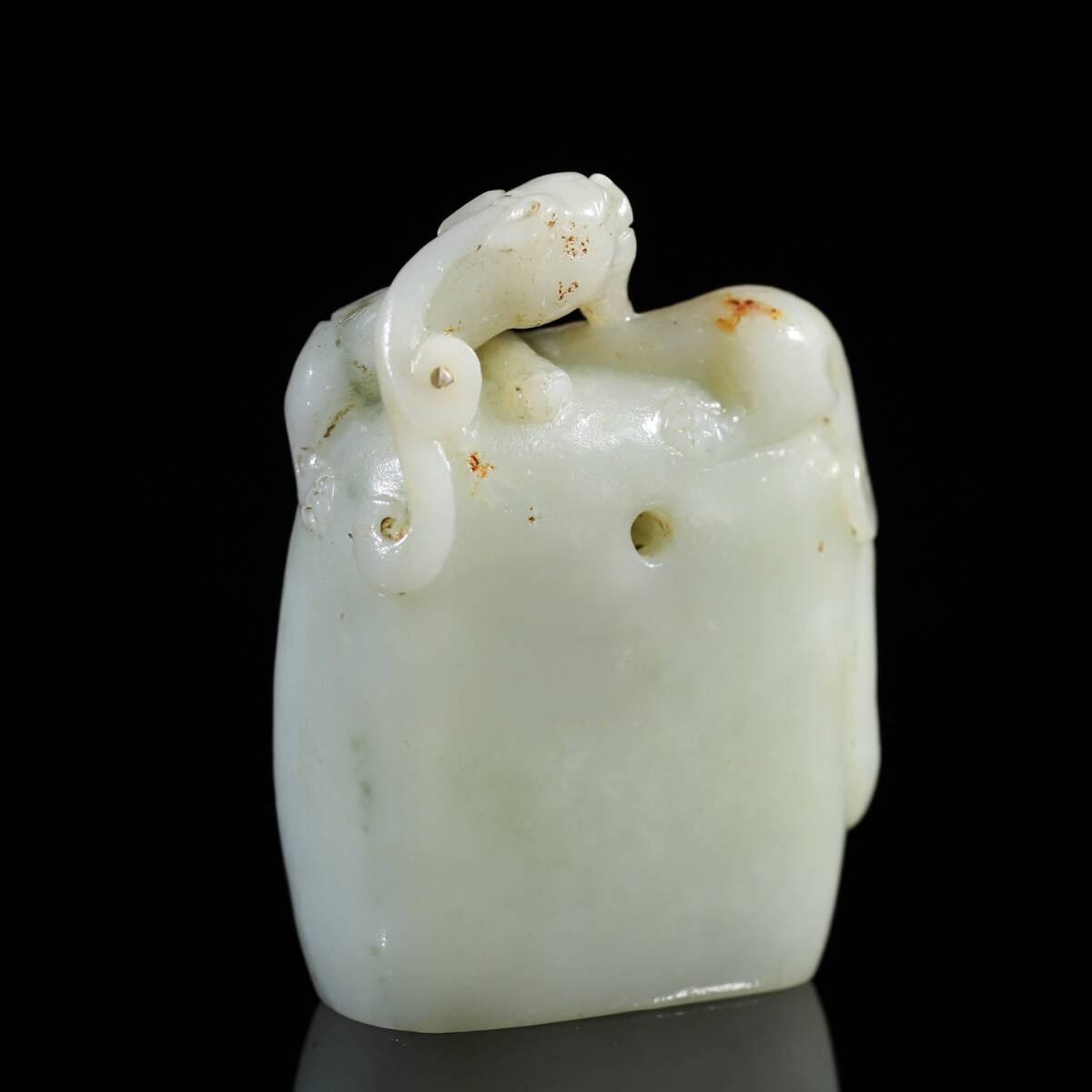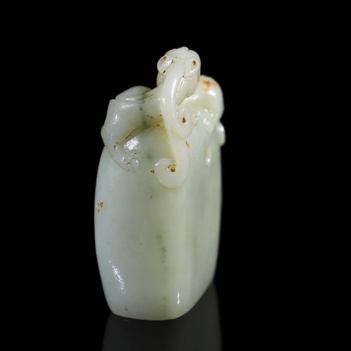 旧蔵 清 玉彫 和田玉 キレート龍印章 極細工 中国古玩 骨董品 古美味 211
