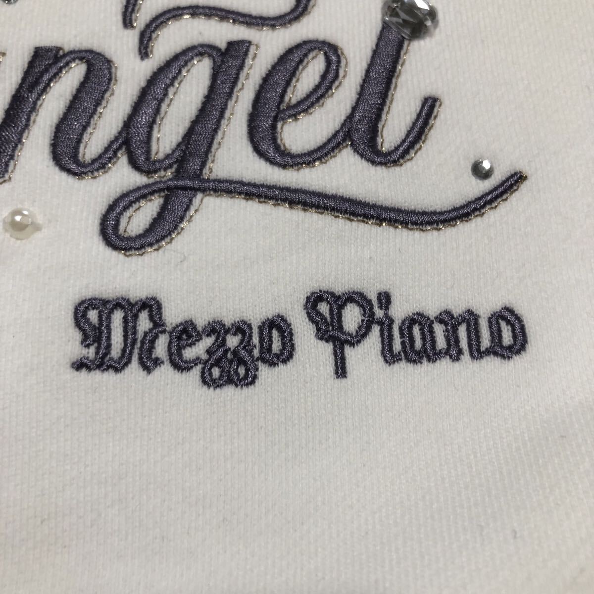 ロゴ周りにキラキラのビジューやフェイクパーツをあしらった、華やかなパーカです。