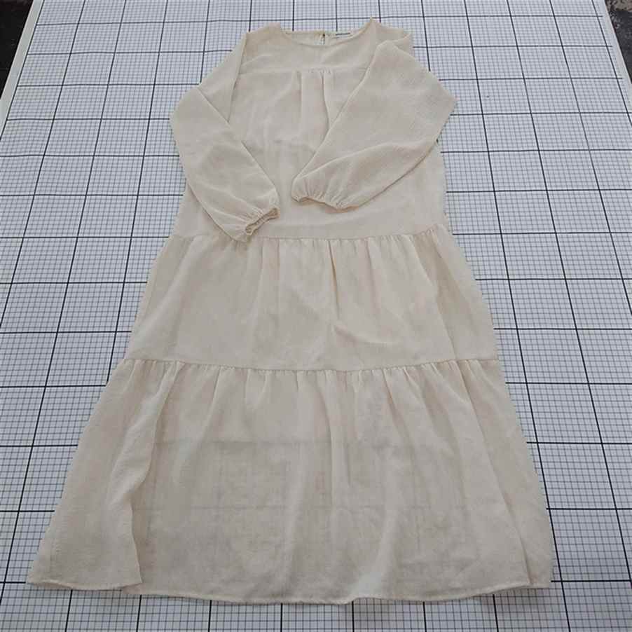 ◇ ⊂ natural couture ナチュラルクチュール ティアード 長袖 膝下丈 ワンピース サイズM クリーム系 レディース E