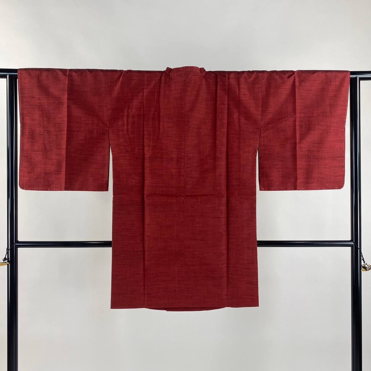 | 道行 美品 秀品 和装コート 角衿 紬地 縞 茜色 身丈91 裄丈65 M 正絹 【中古】 |