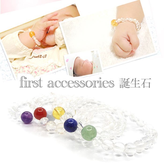 | 【STONE KITCHEN 天然石 パワーストーン】 「おめでとう」の気持ちをこめて・・・ 赤ちゃんのこれから訪れる素敵な未来を願って・・・ 少し変わった出産祝いのギフトをお探しの方にお勧めです。 赤ちゃんの成長に合わせてサイズの変更ができますので、 生まれてすぐから大きくなっても使っていただけます。 成長に合わせて一つ一つ素材を付け足していくことで、 子供の成長をまじかで感じれるブレスレットです。 手をよく動かす赤ちゃんにとって、角のあるものを身につけることは怪我の元となります。 そこで丸みのある素材や危なくない素材をを使ってブレスレットをデザインしました☆ 内周:約12cm(生後3か月~3歳ぐらいまで※サイズはあくまで目安です。) 玉サイズ:天然石各種 8mm・クリスタル 6mm ラピスラズリ 1点 注意事項 ※表示のサイズは必ずしも最大値・最小値のサイズのものが入っているわけではございません。 ※天然石のため同じものでも色味・模様などが異なります。 ※照明の具合で実際とは色合いが異なる場合がございます。 また、天然素材特有のクラック・内包物を有する場合がございます。予めご了承下さい。 | |||