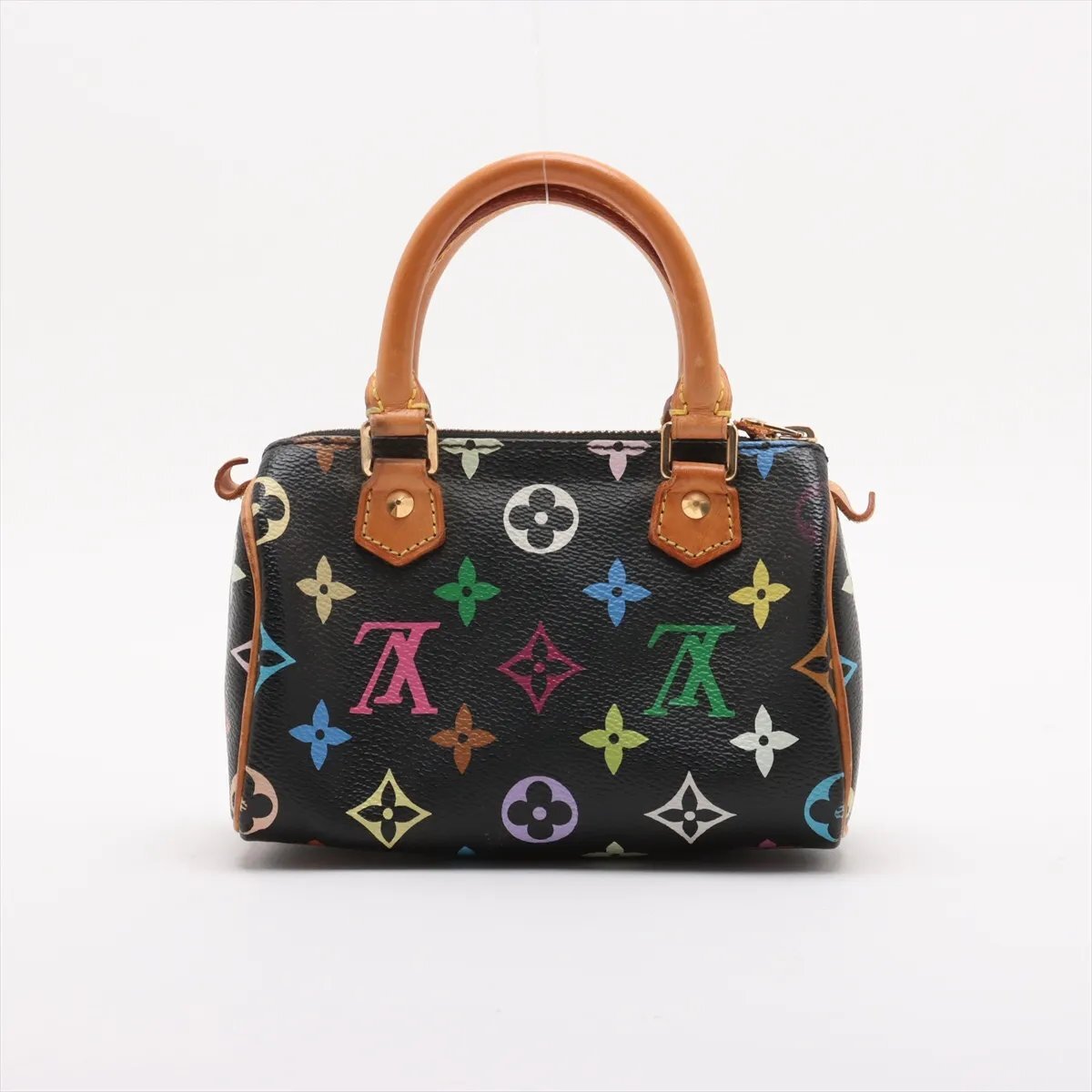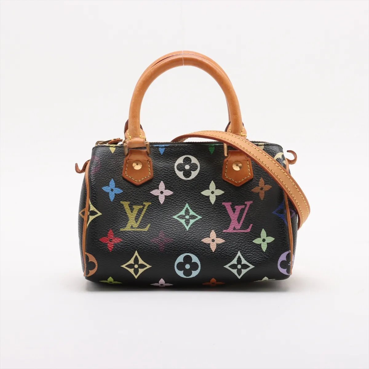 1円 美品 ルイヴィトン モノグラム マルチカラー ミニスピーディ ノワール M92644 2WAY ショルダーバッグ 斜め掛け レディース MMM DA52-4
