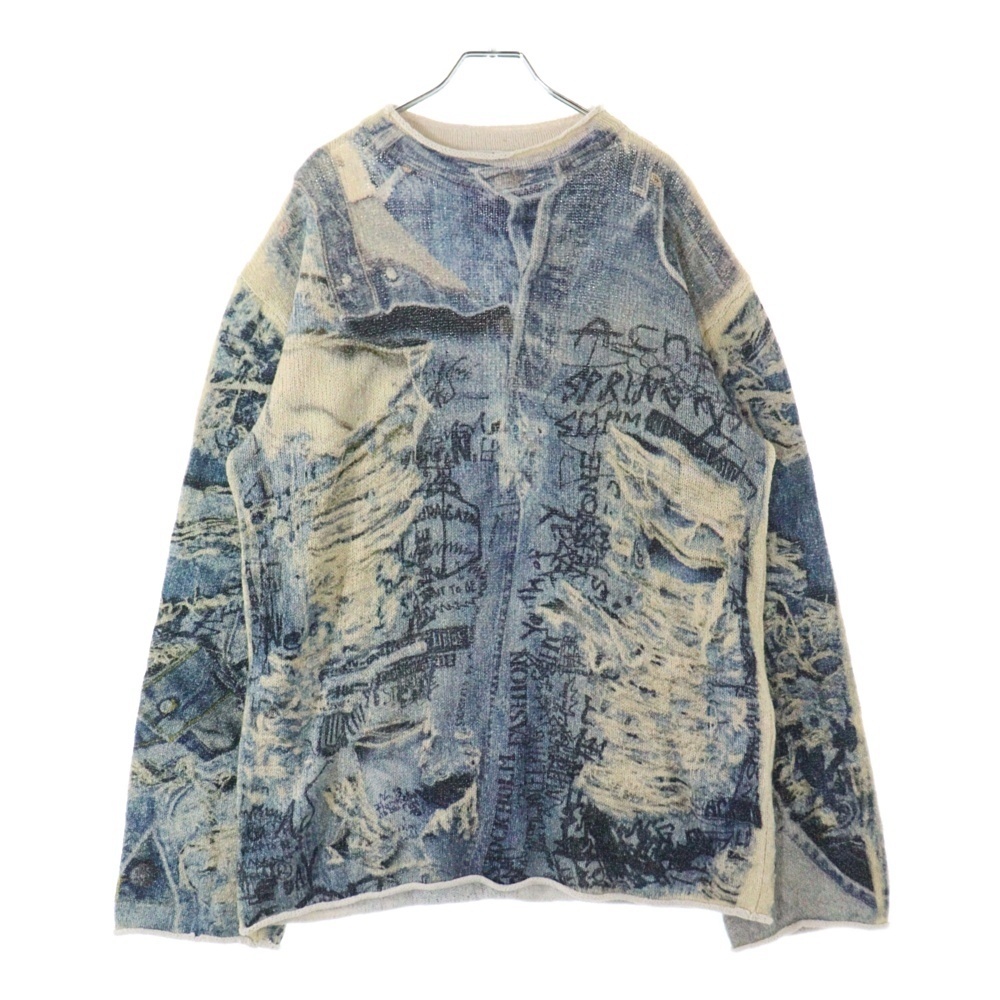 品名PRINTED SWEATER 総柄グラフィックプリント コットンポリニット セーター ブルー/アイボリー FN-MN-KNIT000531