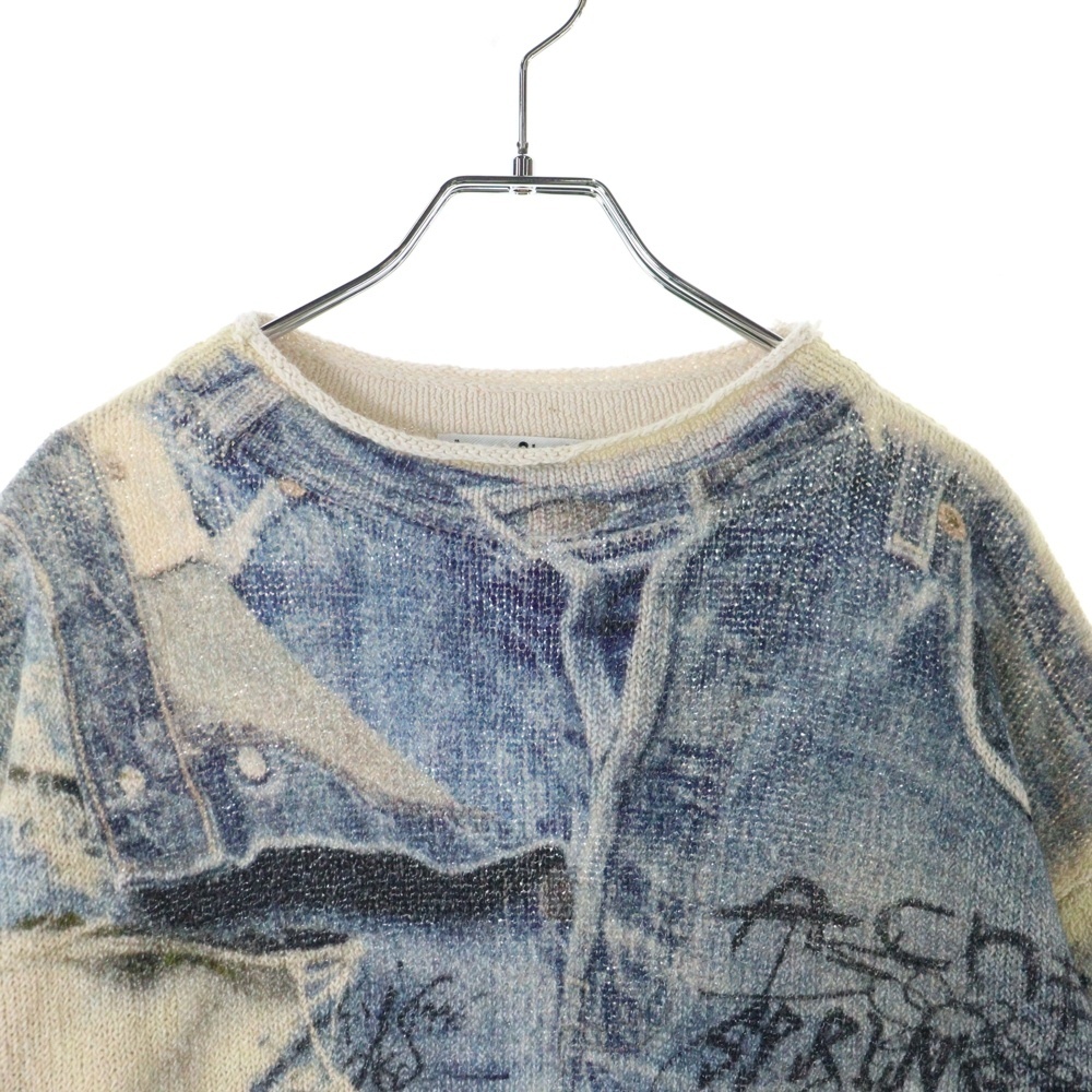 アクネ ストゥディオズ PRINTED SWEATER 総柄グラフィックプリント コットンポリニット セーター ブルー/アイボリー FN-MN-KNIT000531