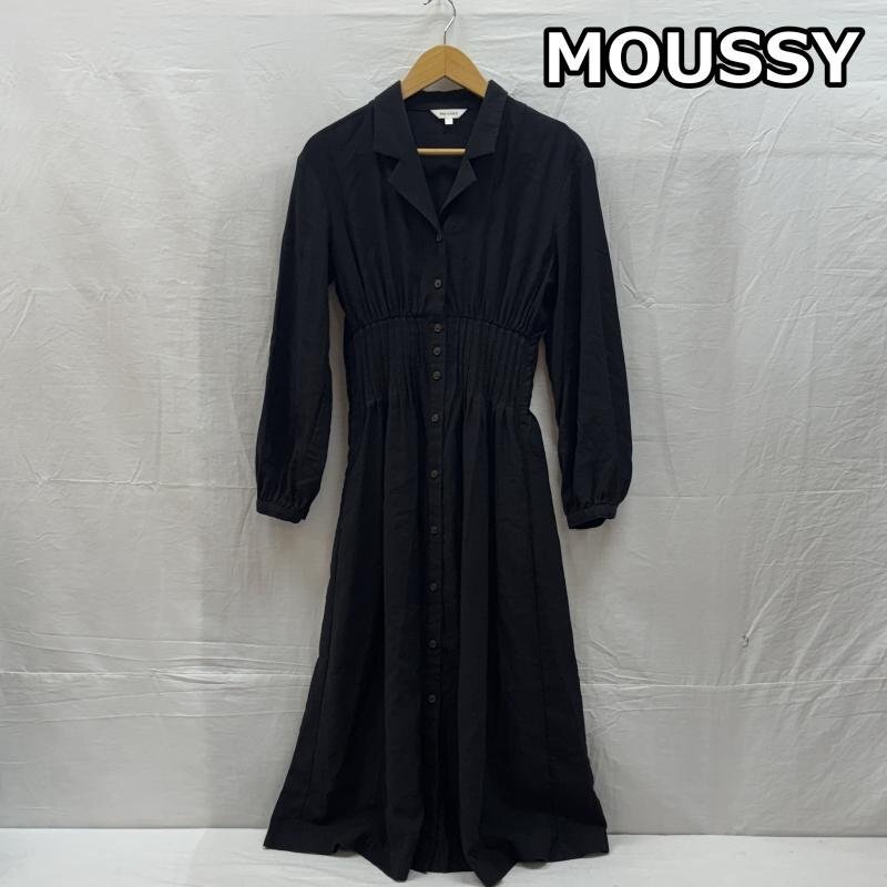 マウジー オープンカラー ウエストタック ロング シャツ ワンピース 黒 ブラック 010CAF30-7100 1