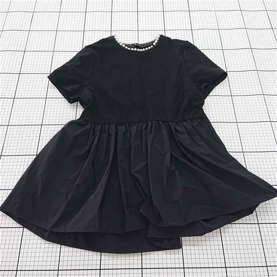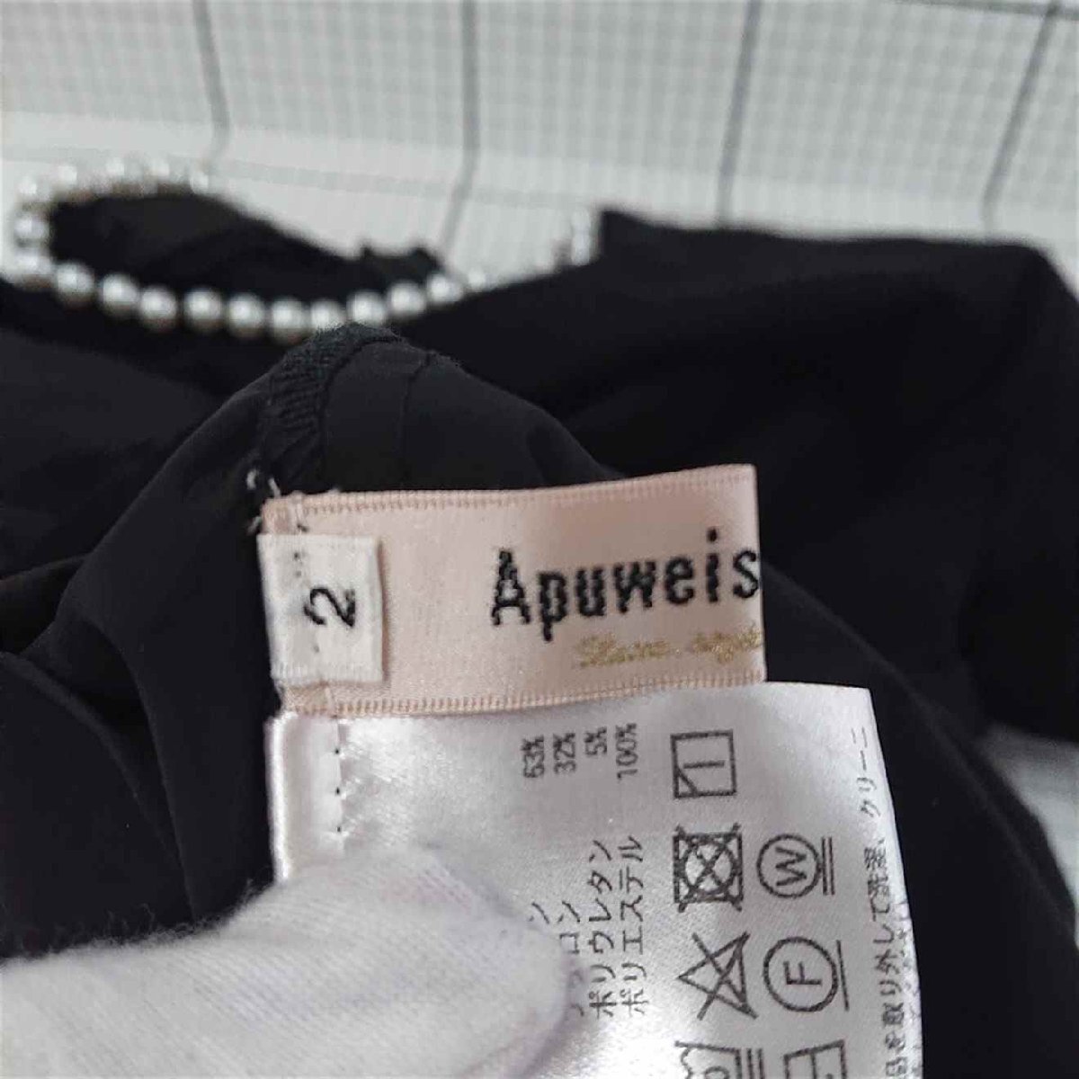 ◇ ⊂ Apuweiser-riche アプワイザー リッシェ 2WAY パール ペプラム 半袖 カットソー サイズ2 ブラック系 レディース E