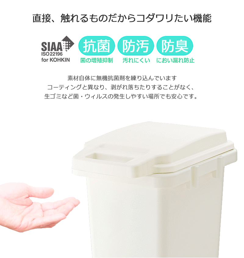 日本製の抗菌・防臭・防汚加工された樹脂製のごみ箱(第3者機関で試験済)