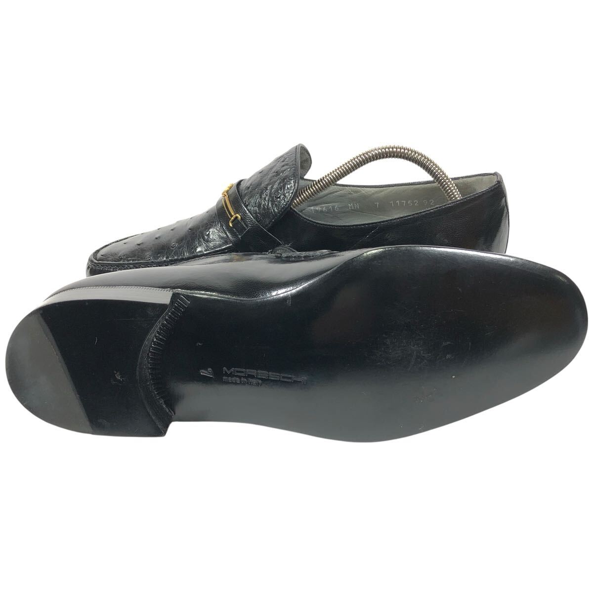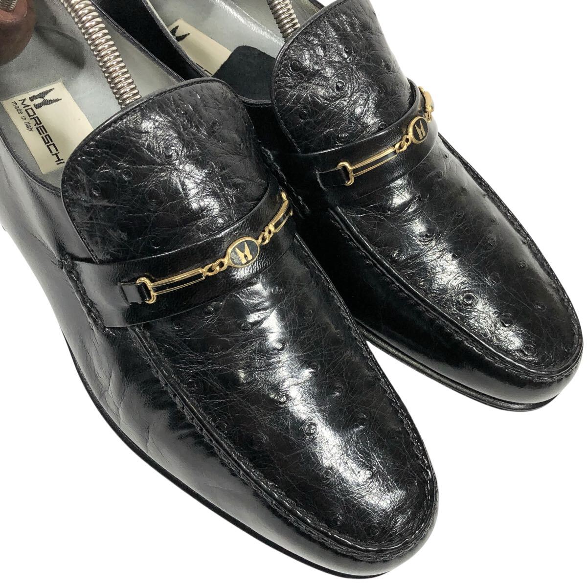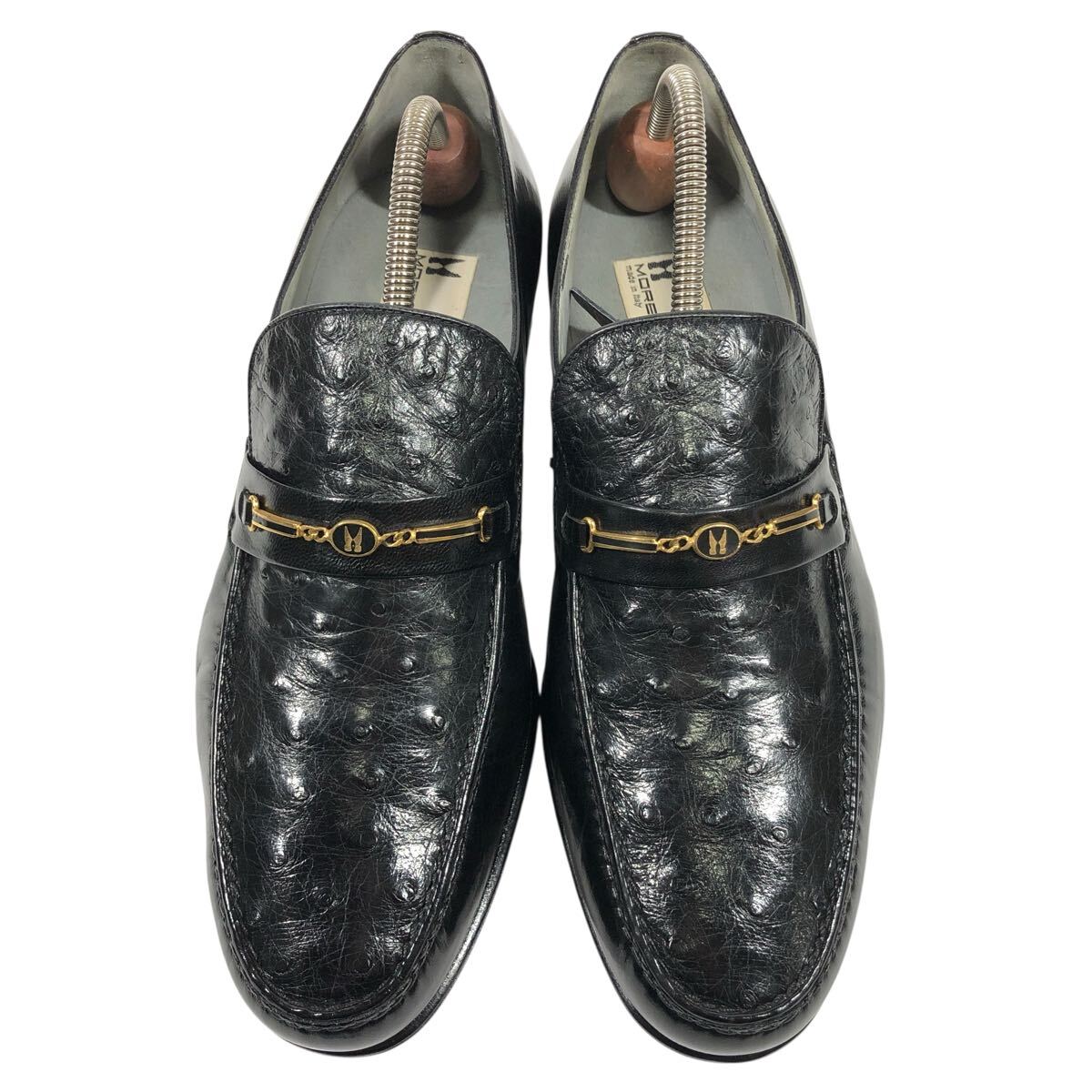 未使用品【モレスキー】本物 MORESCHI 靴 26cm 黒 オーストリッチ ロゴ金具 ローファー スリッポン ビジネスシューズ 駝鳥 メンズ 伊製 7