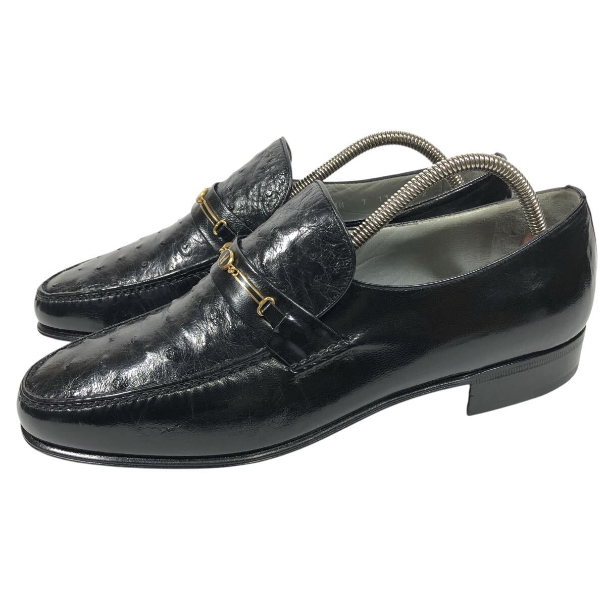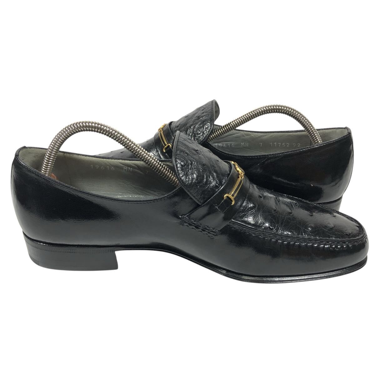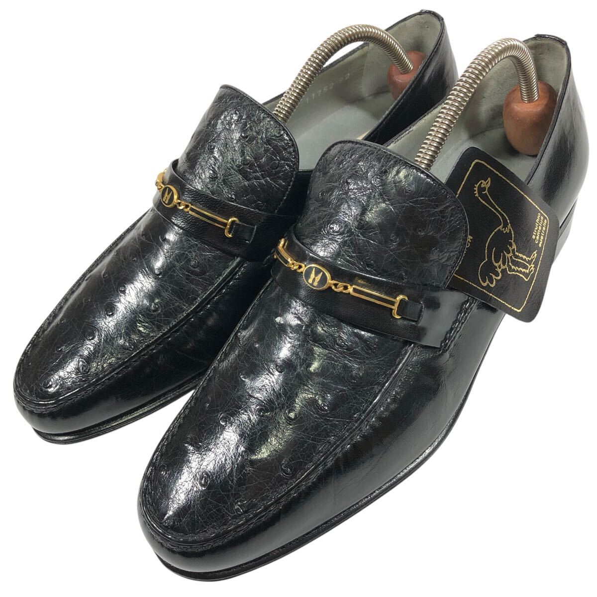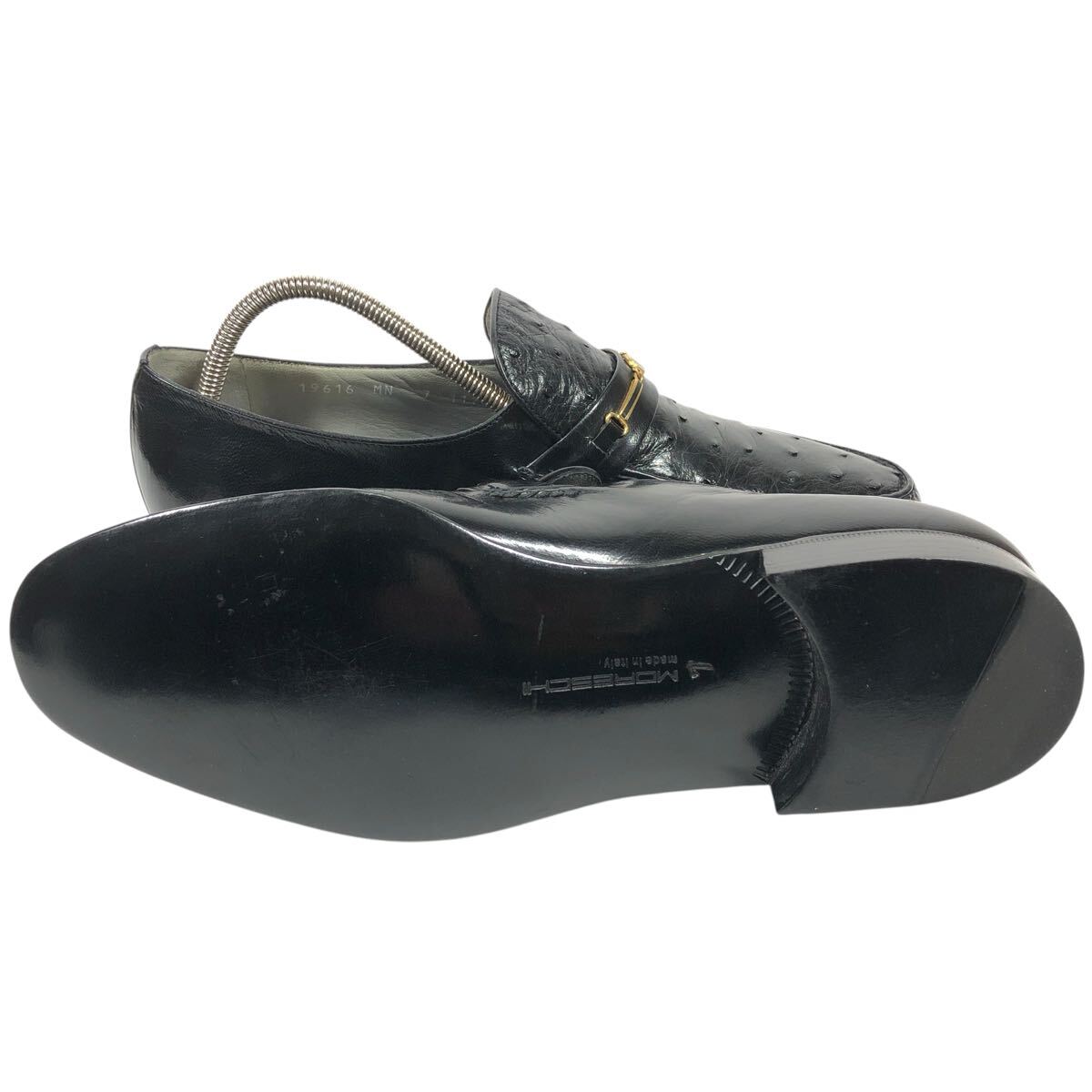 未使用品【モレスキー】本物 MORESCHI 靴 26cm 黒 オーストリッチ ロゴ金具 ローファー スリッポン ビジネスシューズ 駝鳥 メンズ 伊製 7