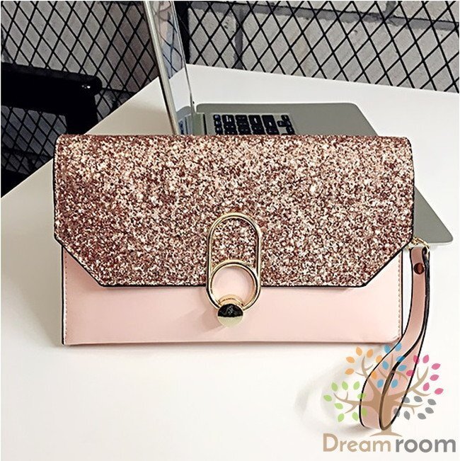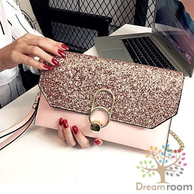 1スタ☆kira グリッター プルタブ クラッチBAG 【ピンク】革 レザー ハンドバッグ 海外セレブ K-081-2