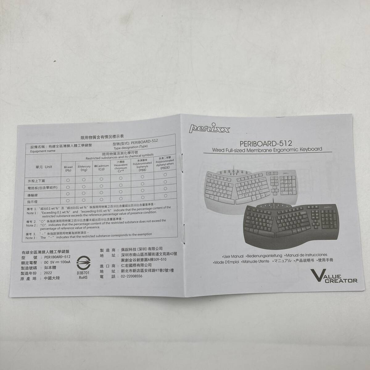【通電確認済】Perixx PERIBOARD-512B 有線エルゴノミクスキーボード/Y32060-M1