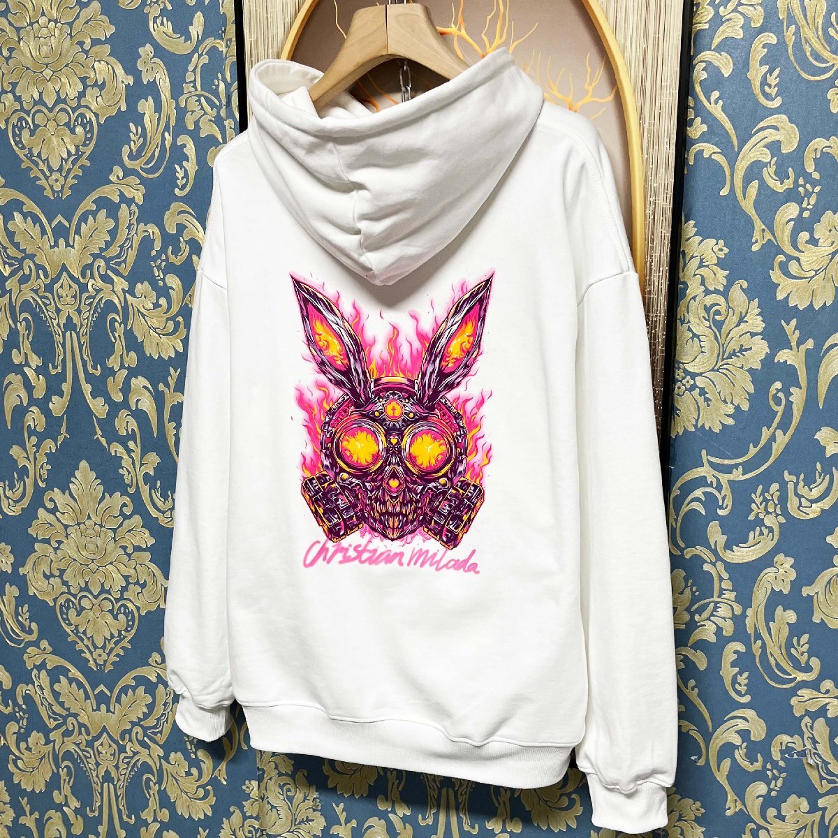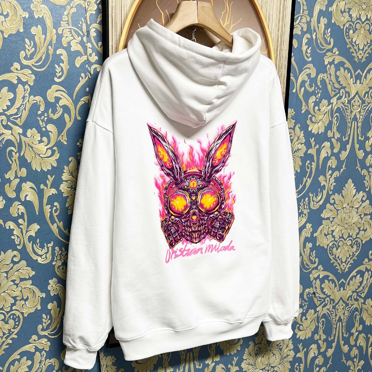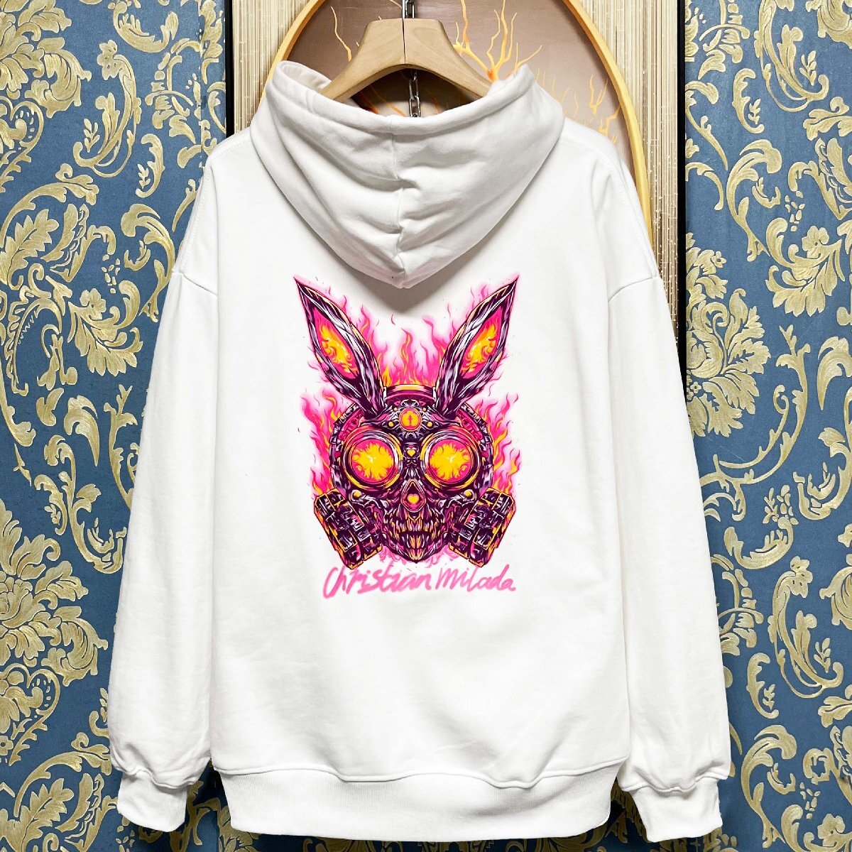 定価4万★christian milada・ミラノ発・パーカー★エジプト綿100% 柔らか プリント トップス スウェット ハロウィン ストリート XL/50