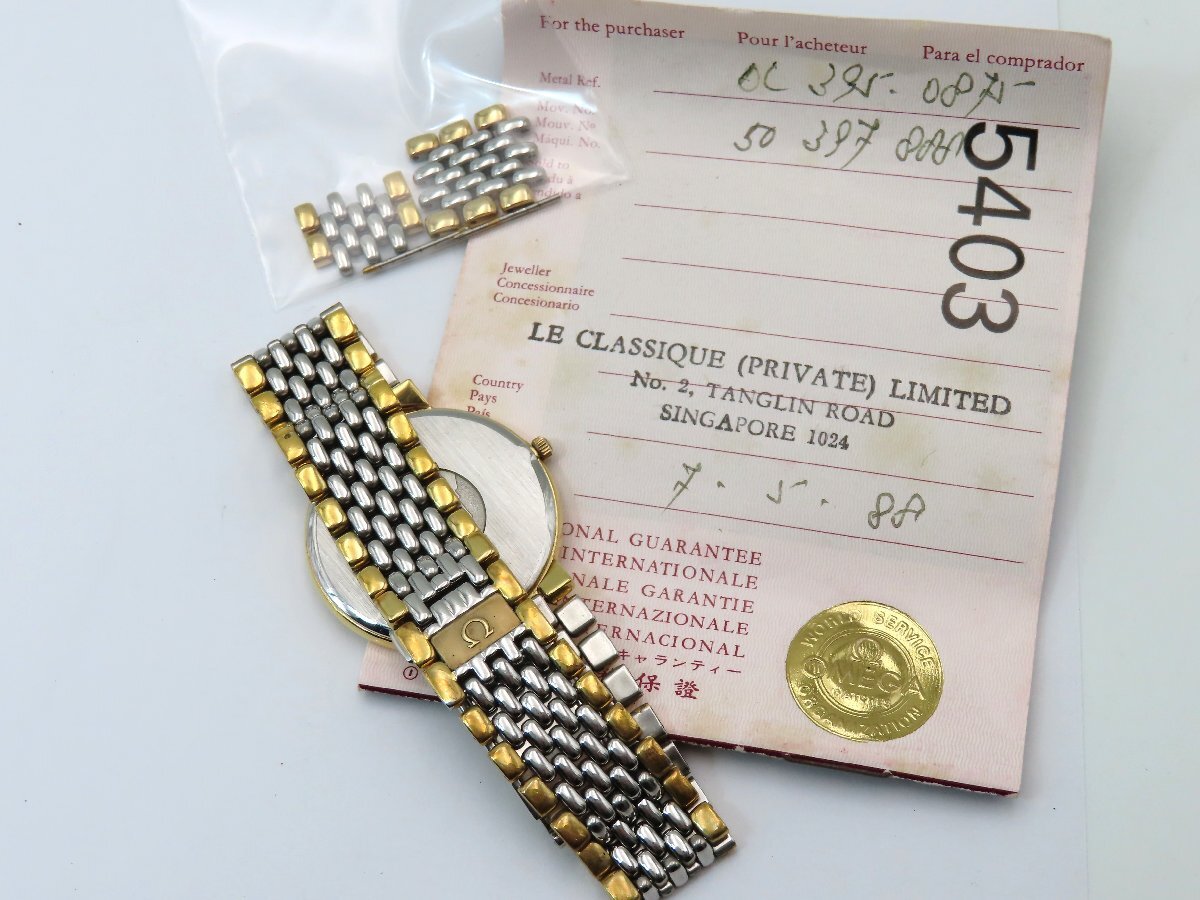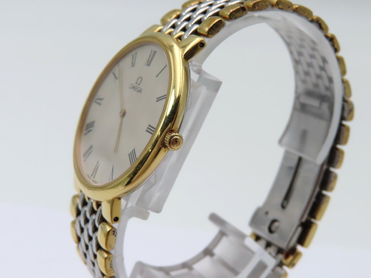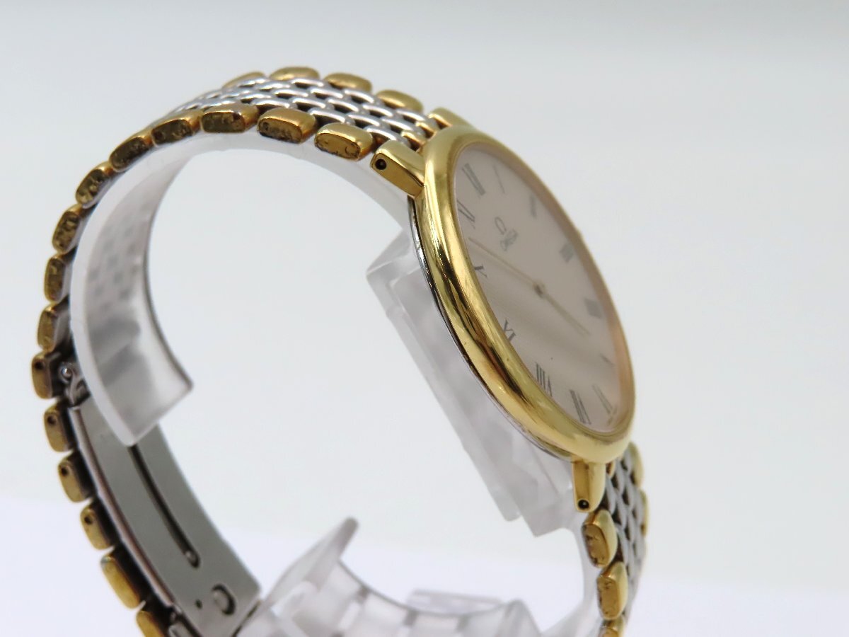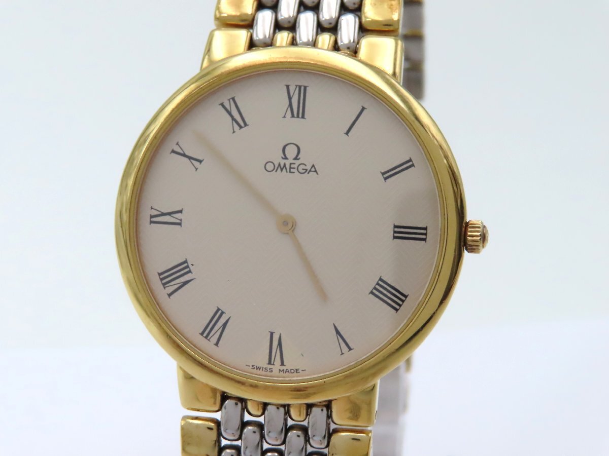 1円 オメガ デビル プレステージ SS/GP シルバー文字盤 稼働 QZ 保 コマ 28863 LBRS