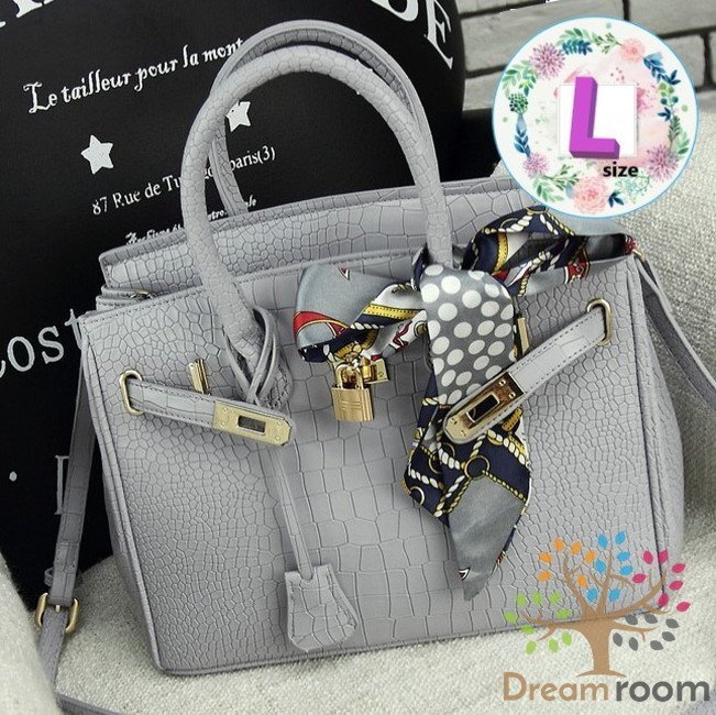 1スタ☆高品質PU レザー クロコ型押し 2way ハンドバッグ ショルダー BAG【グレーL 30cm】 K-103-1