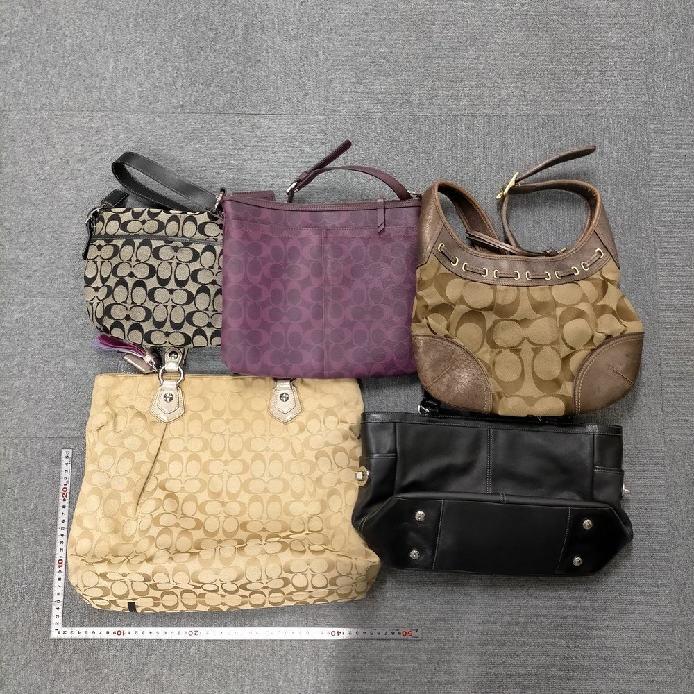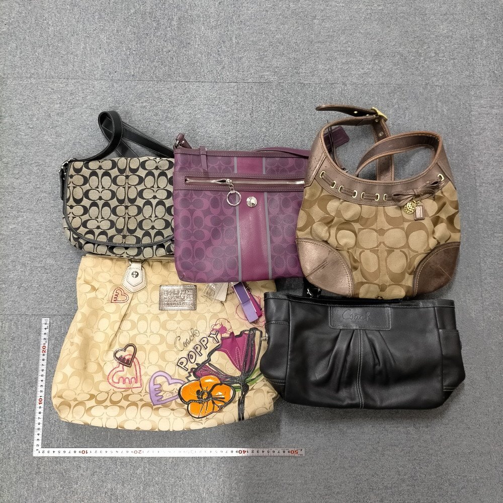 状態備考 : COACH(コーチ)のシグネチャー柄ショルダーバッグやパープルのナイロンショルダー、人気のPOPPYライントート、ブラックレザーバッグなど計5点セットで、ブランドらしいデザインと使いやすいサイズ感が魅力のバッグコレクションです。全体的に使用による擦れや薄汚れ、金具のくすみなど中古品相応の使用感はございますが、目立つダメージはなくまだまだ普段使いにお使いいただける良好なコンディションだと思います。状態やデザイン、色味などは必ず写真にてご確認のうえ、中古品にご理解のある方のみご入札ください。