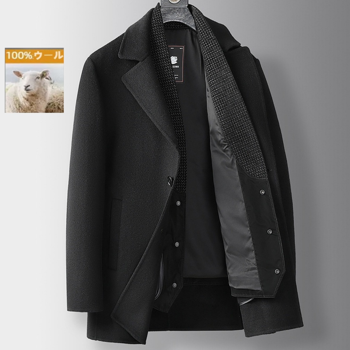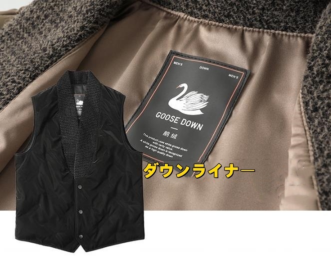 チェスターコート ダウンコート ウールコート メンズ★新品 ダウンライナー ビジネスコート アウター【K65-YS295】黒色 2XL