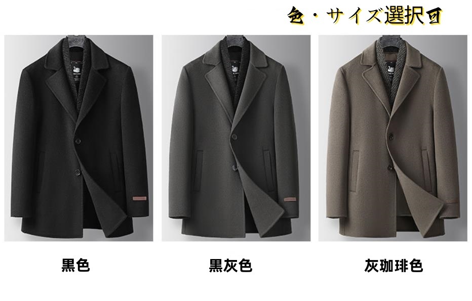 チェスターコート ダウンコート ウールコート メンズ★新品 ダウンライナー付き ビジネスコート アウター ビジネスジャケット【K65-YS295】黒色 2XL