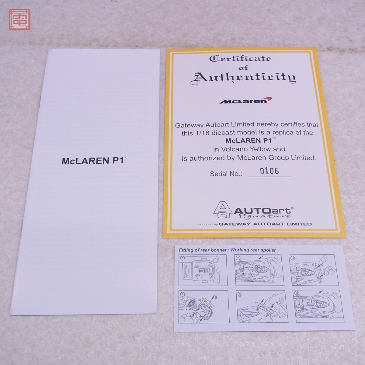 内箱未開封 オートアート 1/18 マクラーレン P1 VOLCANO YELLOW No.76021 AUTOart ■未使用と判断しましたので、未チェックのままお譲りします。万が一、使用済み品であった場合はご容赦ください。 ■こちらの商品は未使用のままでお譲りいたします。 ■未使用品は未使用である事に価値があるため使用後のクレームや返品に応じる事は出来ません。 ■付属パーツに汚れ、塗装浮きがあります。 ■封テープで固定されているため、開けずに行える範囲でのチェックを行っています。 ■写真のものが全てです。付属物の有無や状態については写真からご判断ください。 ■付属物については細かいチェックはしておりませんので、万が一、欠品があったり余計な物が入っていたとしてもご了承ください。 ■商品到着後、当店の保証期間中は、商品及び箱や取説、付属品などを1つでも廃棄や破損をしないようにお願い致します。廃棄や破損をした場合、商品に問題があった場合でも対応や返金などの対処ができなくなります。 ■商品によりますが、発売されてから10年以上経過している中古品である事をご理解頂いた上でご入札をお願い致します。なお、新品や美品、また特記事項がある場合は別途明記します。 | |||