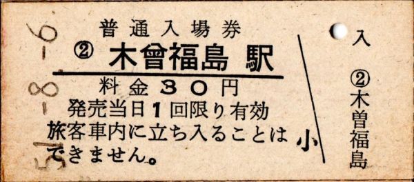 JR東海エリア 木曾福島駅(中央本線)入場券 30円券