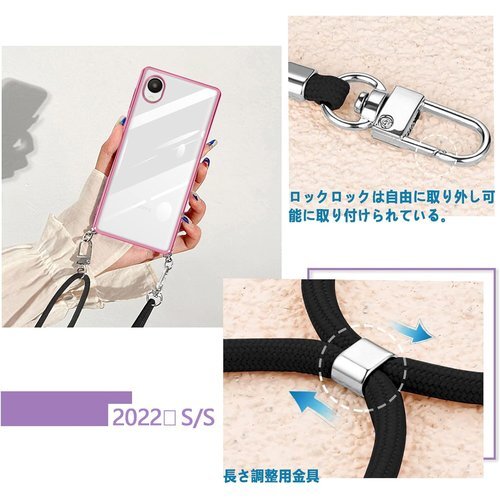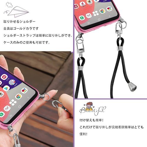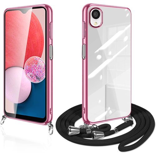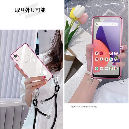 Galaxy A23 5G ケース クリア ショルダー SC-56C SCG18 スマホケース 透明 TPU カバー ストラップ付き 肩掛け 首掛け 紐付き 斜めがけ 薄型 耐衝撃 シリコン メッキ加工 ローズゴールド 715
