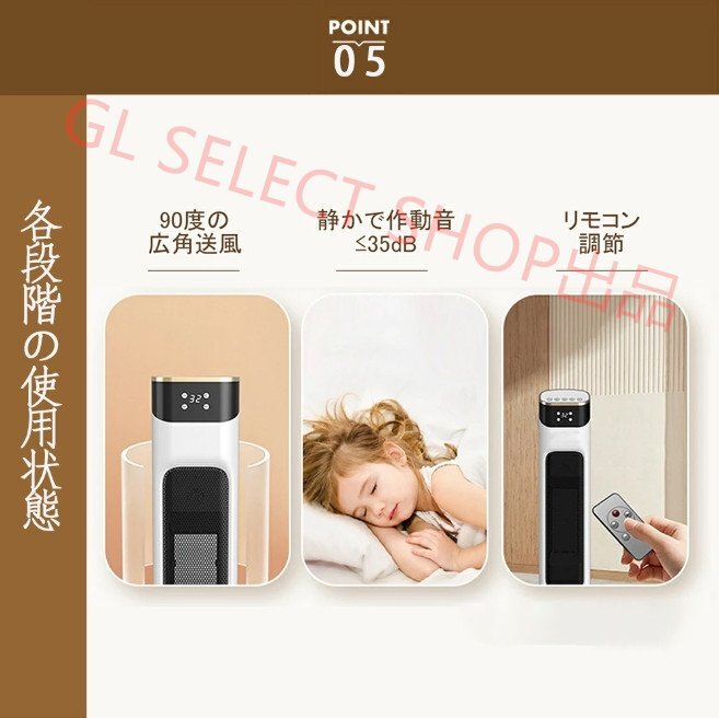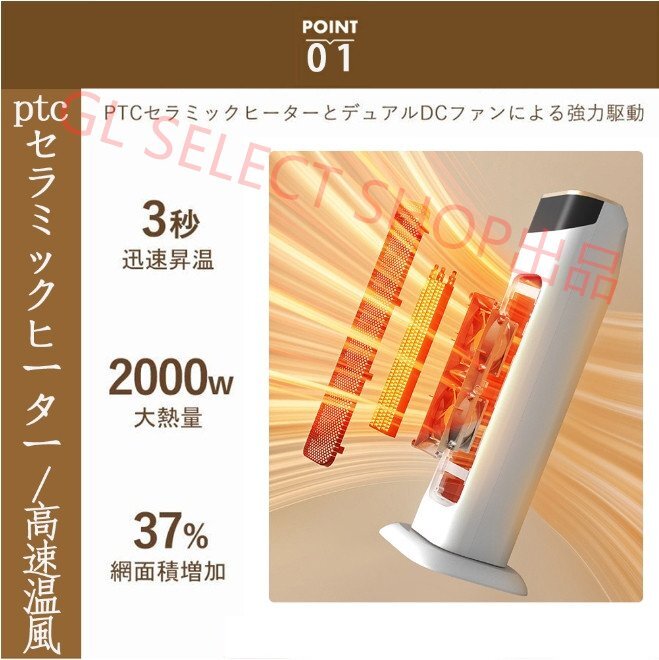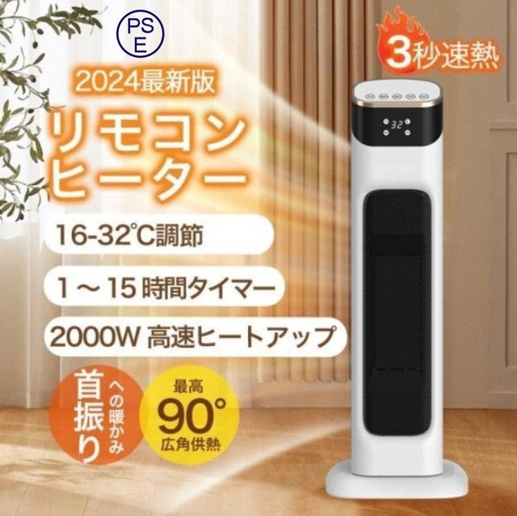 セラミックヒーター 冷暖兼用 2000W 3秒速熱 左右首振り 羽なし 過熱保護 転倒自動OFF リモコン付き 静音 省エネ 防寒 暖房器具 寝室A95