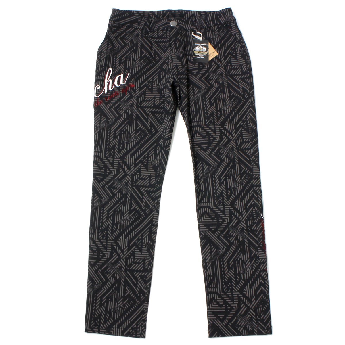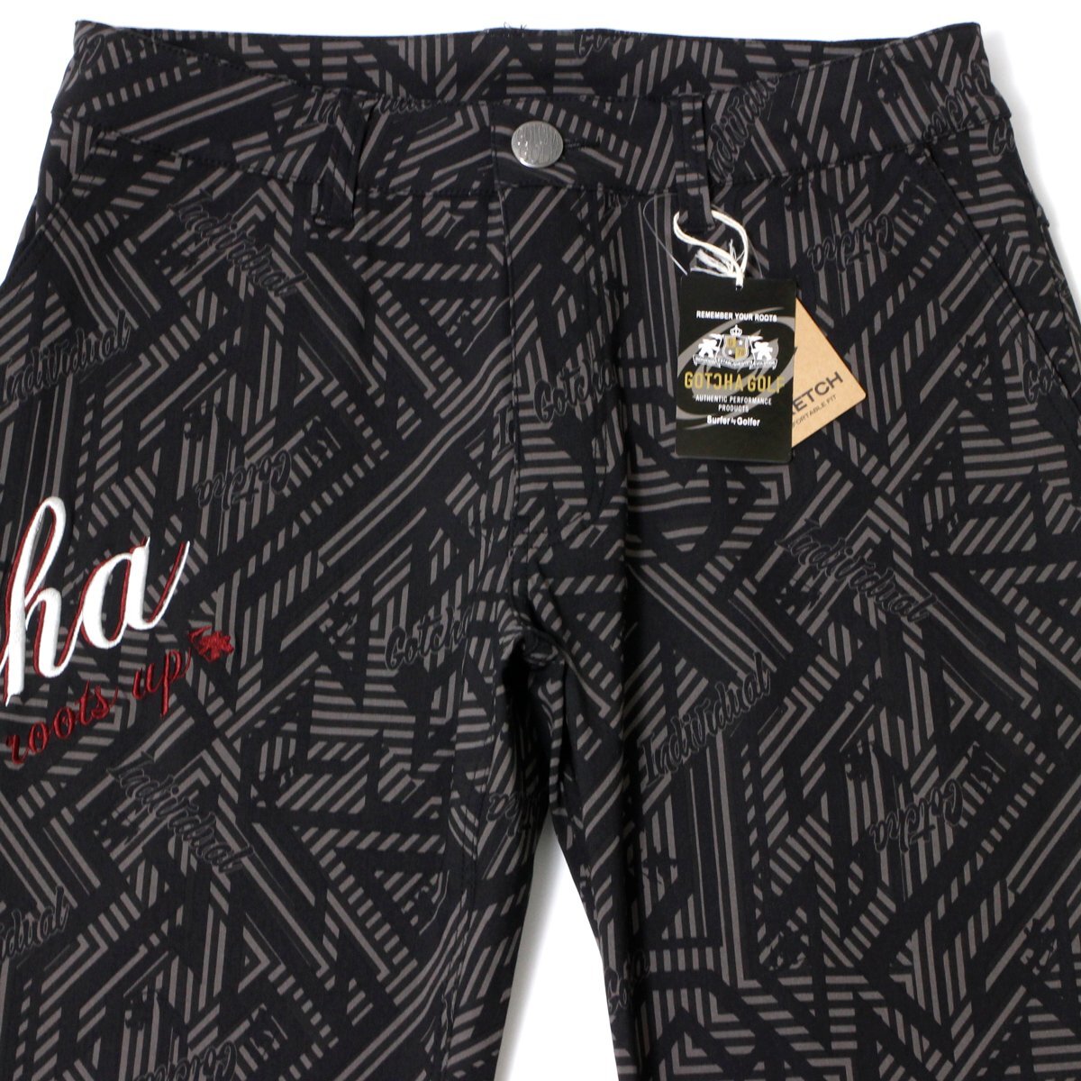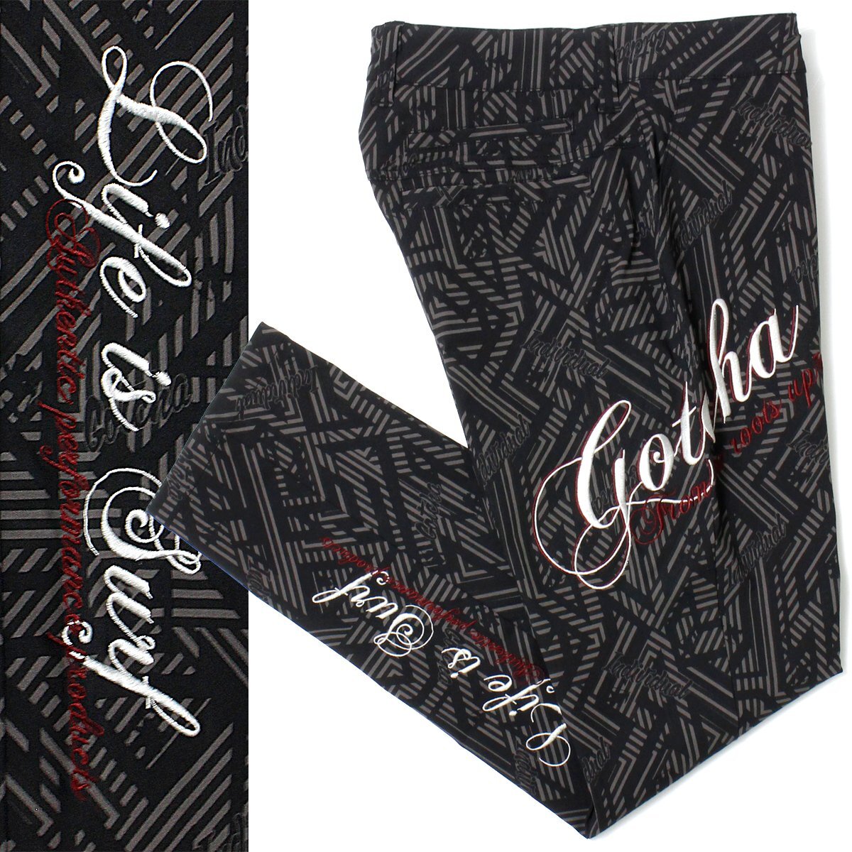 GOTCHA GOLF ガッチャ ゴルフ パンツ 刺繍 ストレッチ ロングパンツ メンズ ボトムス 総柄 ロングシーズン 新品 XL 黒 ◆AA13B
