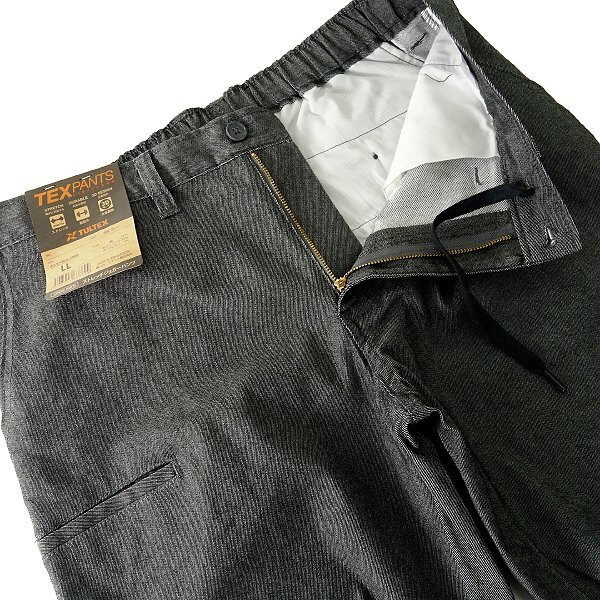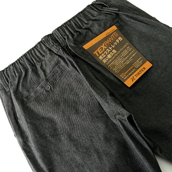 Lサイズ(画像では、別サイズを使用) ウエスト84cm~94cm ※商品に記載されたサイズ・寸法です※ ウエスト84~94cm(内回り1周・ゴム仕様) 股上26.5cm 股下73cm 裾幅15cm 腿幅28cm(股下10cm部分) 綿71% ポリエステル26% ポリウレタン3% ダークグレー |