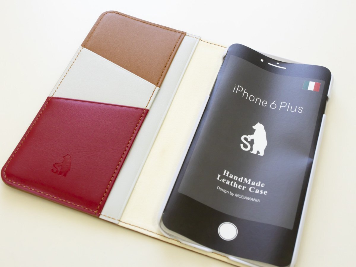 新品 訳あり iPhone6Plus iPhone6SPlus 高級 手帳型 イタリア産 本革 ケース バンディエラ ベージュ modamania