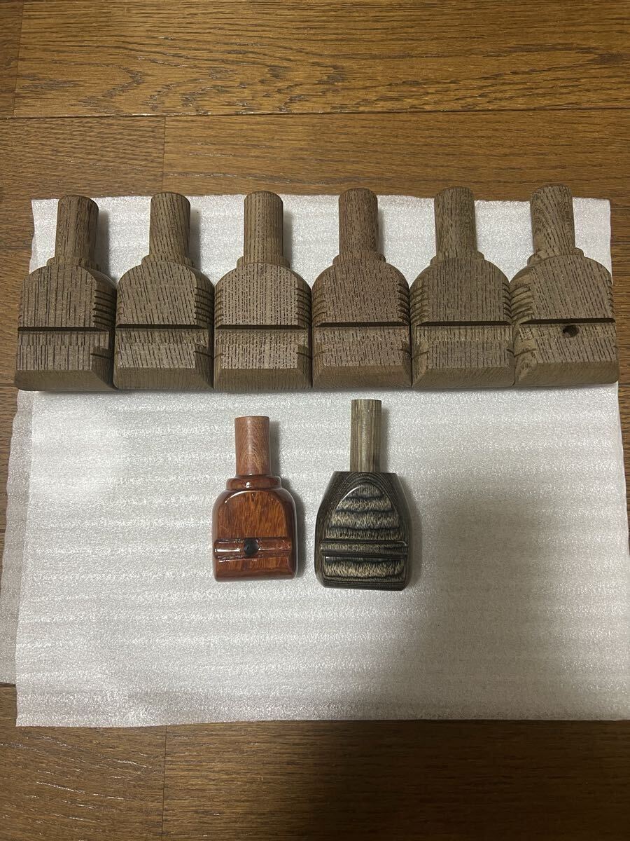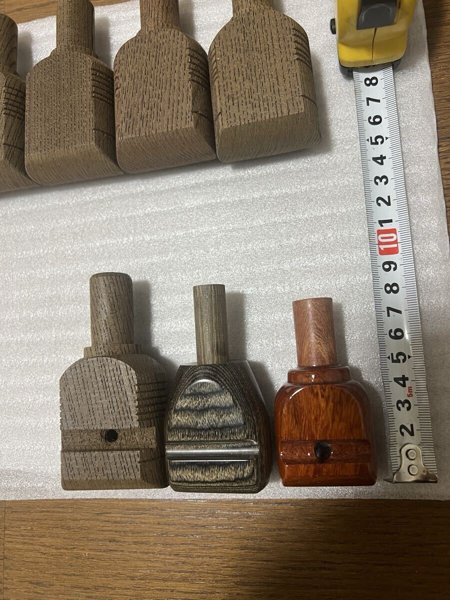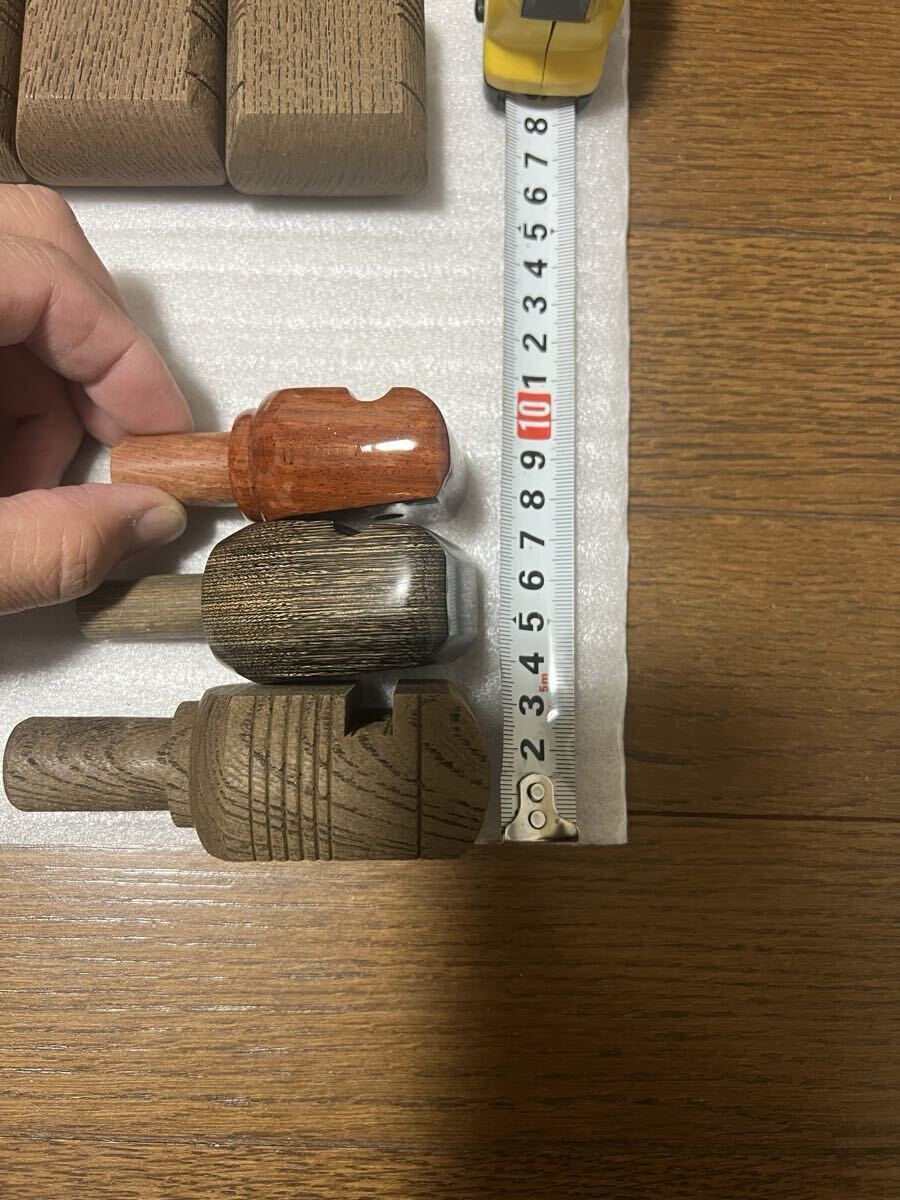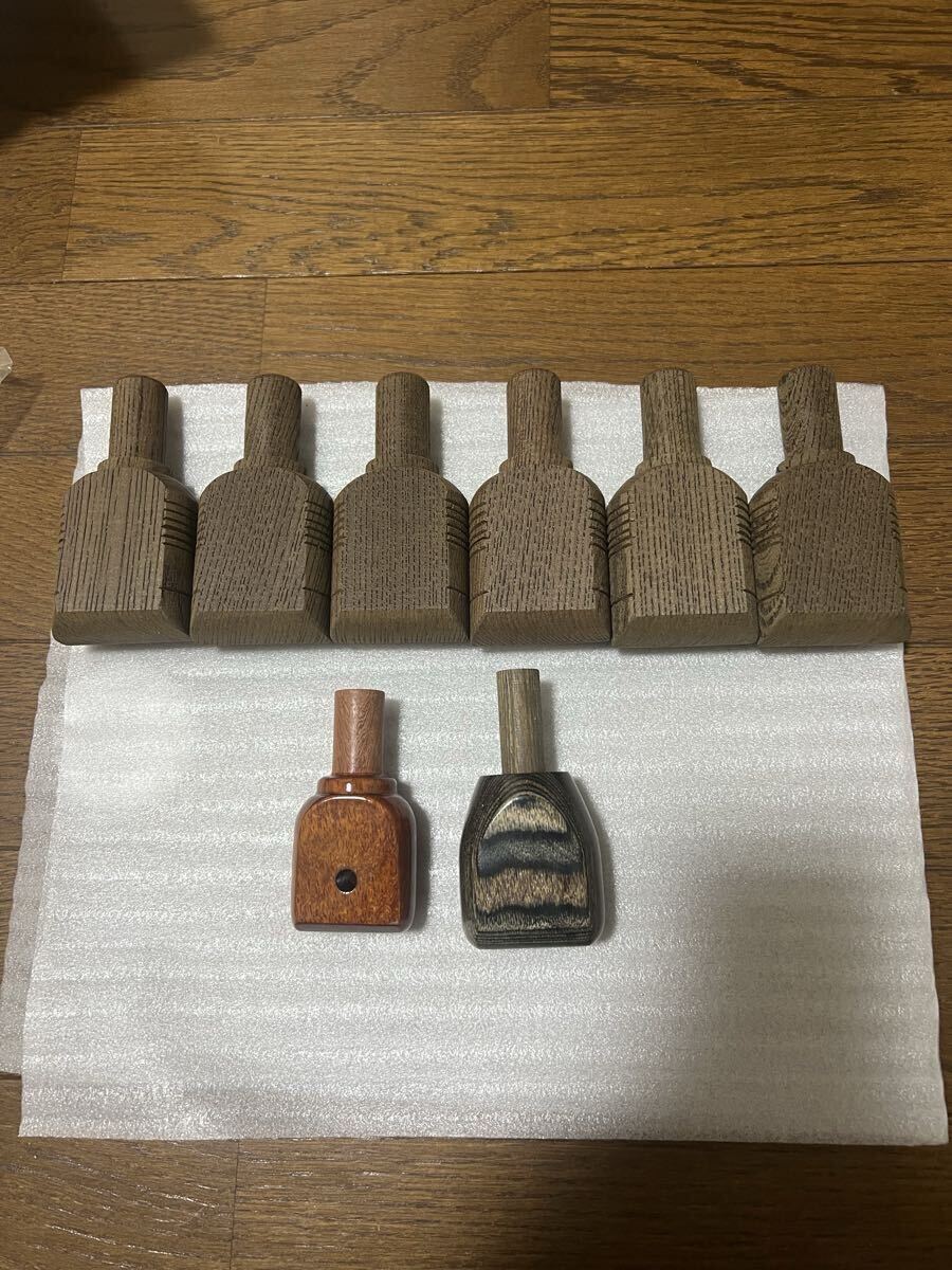 材質は明るい艶ニス仕上げのみ花梨、他は忘れてしまいました。木目と色味でご検討ください。