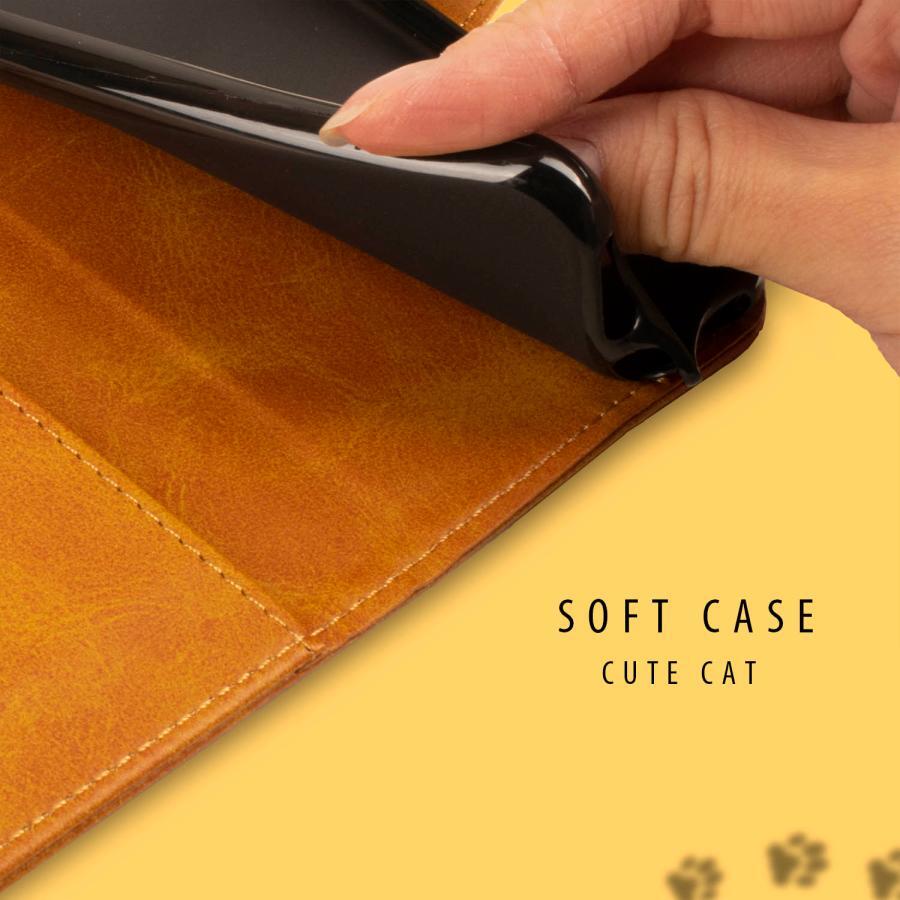 ♪ワンポイントのかわいい猫ちゃんがついた手帳型ケースです