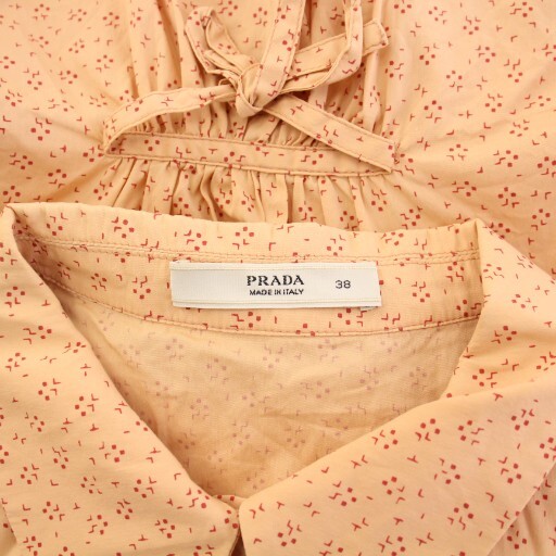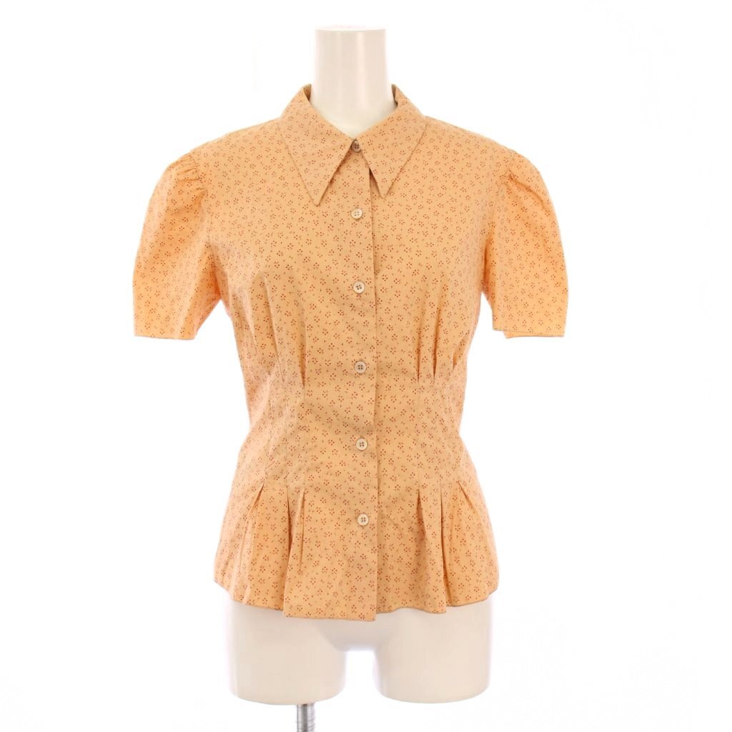 プラダ PRADA シャツ ブラウス 半袖 レギュラーカラー パフスリーブ 総柄 38 オレンジ /BB レディース